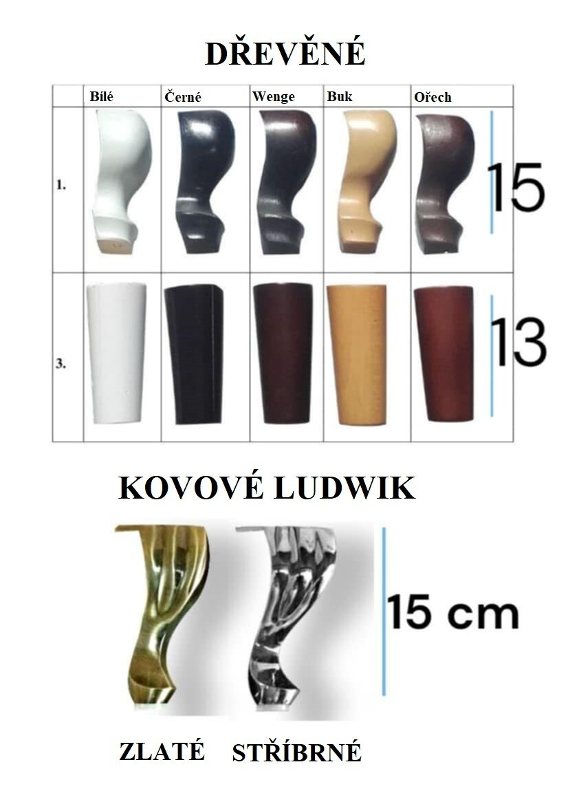 Dřevěné nohy, můžete si vybrat barvu: bílá, buk, ořech, wenge, černá.