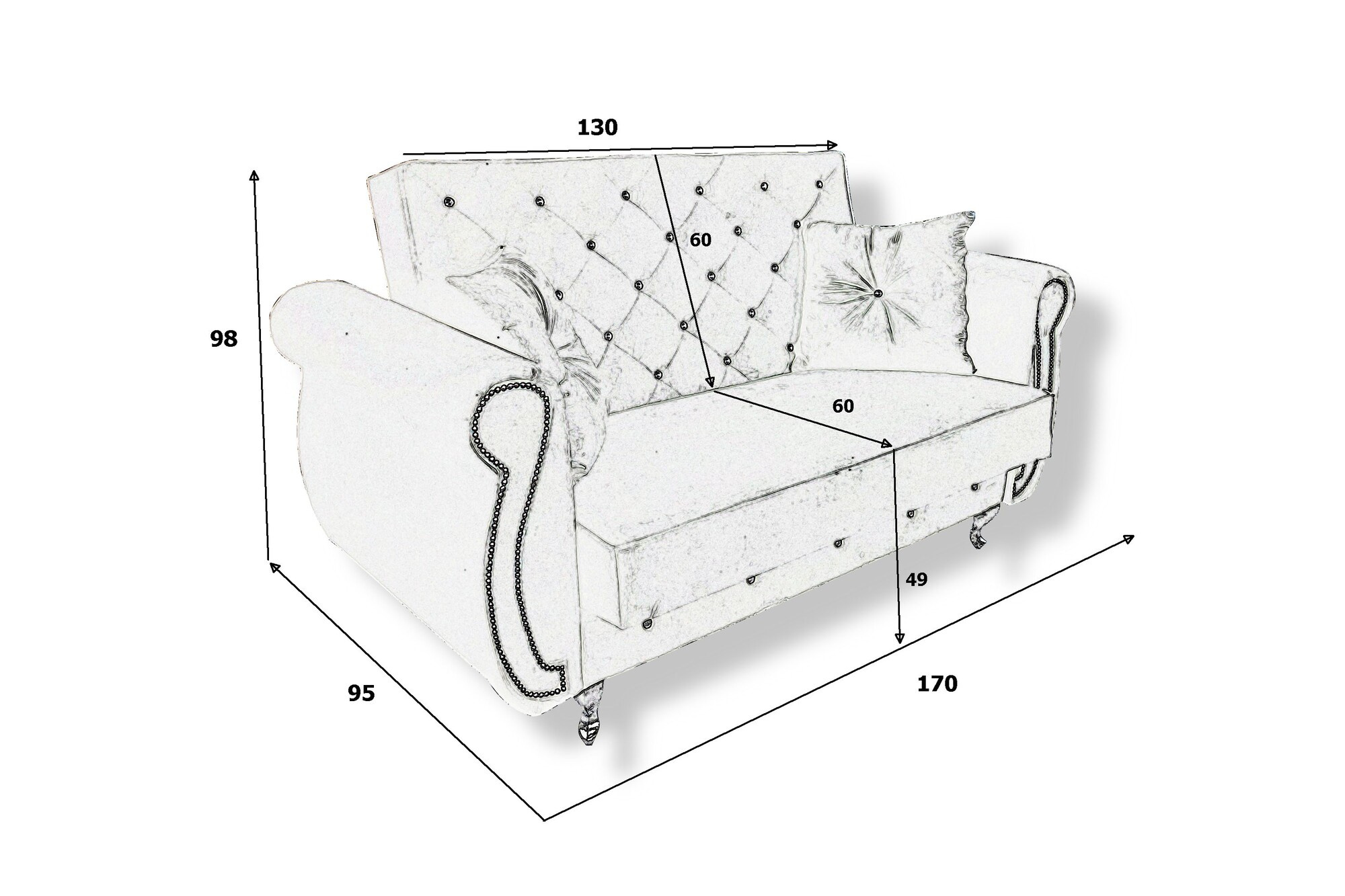 Pohovka SOFA MANCHESTR 2 místná, potah: Royal Velvet 219, Nohy: typ 1B, stříbrné krystalky, stříbrné zdobení