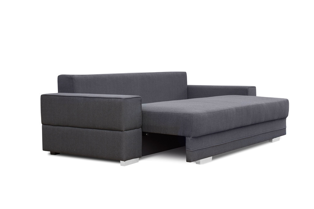 SOFIA je třímístná pohovka, díky níž můžeme prakticky a zároveň velmi moderně zařídit volný prostor obývacího pokoje, zasedací místnosti nebo třeba soukromé pracovny. Jednoduchý tvar pohovky je vybaven tvarovanými područkami a třemi polštáři umístěnými na opěradle. Rozložená pohovka je vyplněna vlnitými pružinami a pěnou T-30 na opěradle a sedáku, díky čemuž si kus nábytku zachová patřičnou pružnost a nevzniknou na něm nevzhledné deformace. Dřevěný rám pohovky zajišťuje odolnost a odpovídající pevnost konstrukce, kterou doplňují chromované nožky. Volně stojící pohovka SOFIA je čalouněná látkou, jejíž barvy lze zvolit podle individuálních preferencí a vzhledu zařízené místnosti. Díky čalouněnému opěradlu může být SOFIA umístěna jak u stěny, tak uprostřed prostorné místnosti. Je třeba mít na paměti, že tento kus nábytku je vybaven úložným prostorem na lůžkoviny a má funkci spaní. Pohovka SOFIA vám zajistí bezpečný a zároveň pohodlný odpočinek.