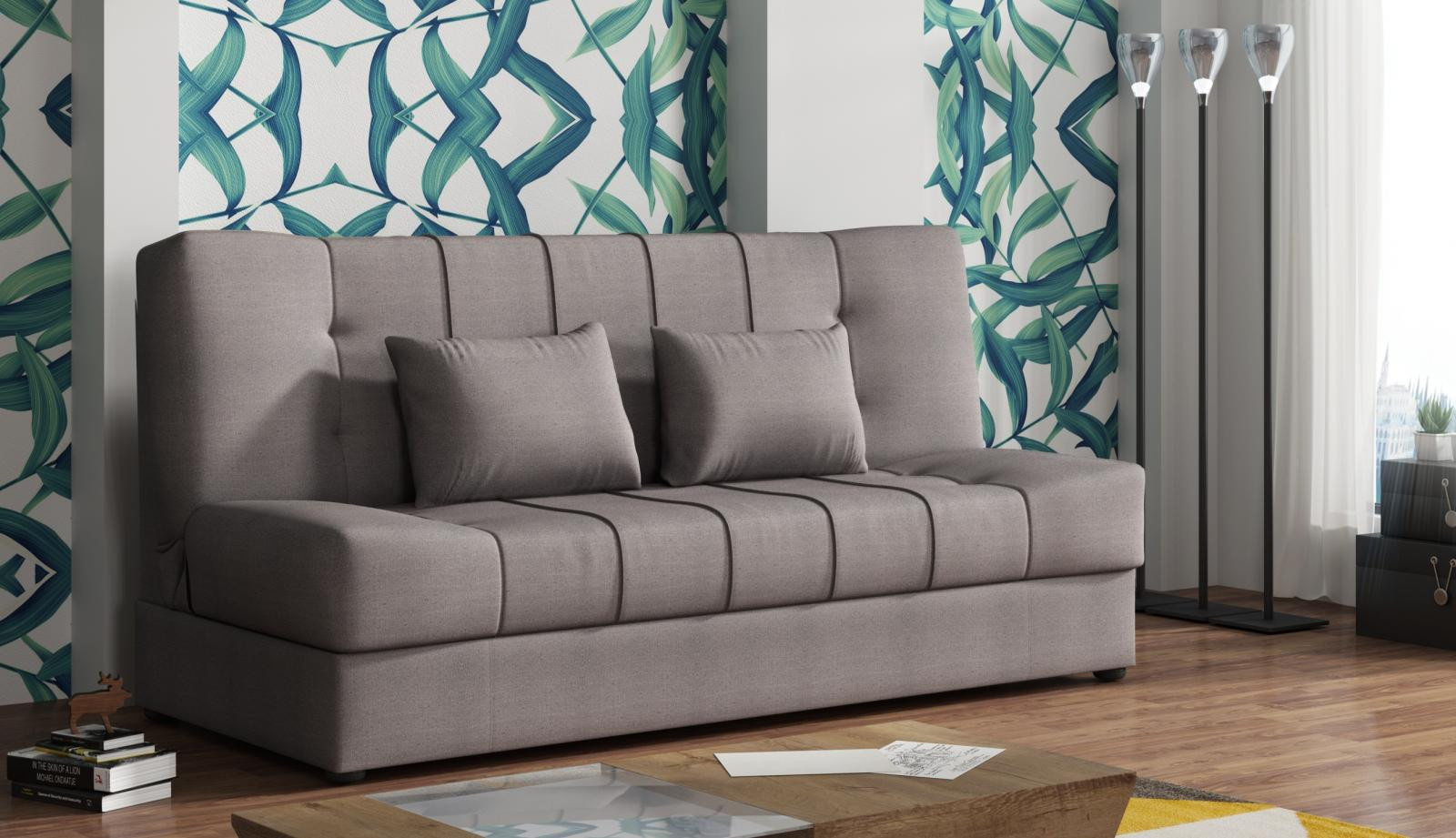 Pohovka Sun je příjemným spojením elegance, funkčnosti a atraktivní ceny. Skvěle doplní design Vašeho obývacího pokoje, ale je také vhodná např. do studentského pokoje, pracovny, nebo hostinského pokoje. Pohovka je rozkládací. Jednoduchým rozložením pomocí systému klik klak, získáte lůžko k občasnému přespání Vaší návštěvy. Samozřejmostí je i praktický úložný prostor, který můžete využít třeba na lůžkoviny. Pohovku nabízíme v několika trendy barevných provedeních. V ceně pohovky jsou 2 dekorační polštářky. Ostatní vyobrazené doplňky a dekorace nejsou v ceně. Zobrazení barev na fotograii se může od skutečnosti lišit.