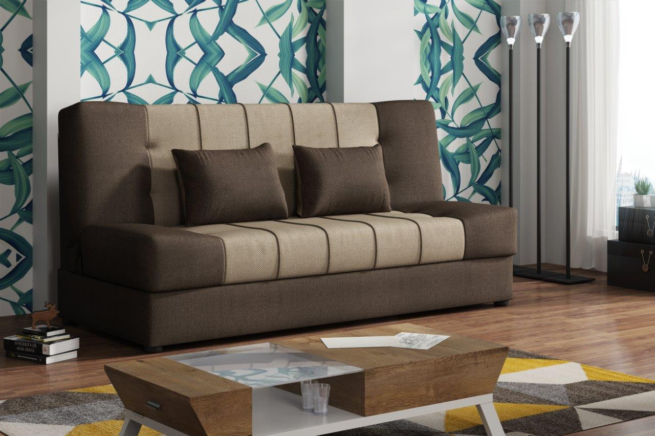 Pohovka Sun je příjemným spojením elegance, funkčnosti a atraktivní ceny. Skvěle doplní design Vašeho obývacího pokoje, ale je také vhodná např. do studentského pokoje, pracovny, nebo hostinského pokoje. Pohovka je rozkládací. Jednoduchým rozložením pomocí systému klik klak, získáte lůžko k občasnému přespání Vaší návštěvy. Samozřejmostí je i praktický úložný prostor, který můžete využít třeba na lůžkoviny. Pohovku nabízíme v několika trendy barevných provedeních. V ceně pohovky jsou 2 dekorační polštářky. Ostatní vyobrazené doplňky a dekorace nejsou v ceně. Zobrazení barev na fotograii se může od skutečnosti lišit.