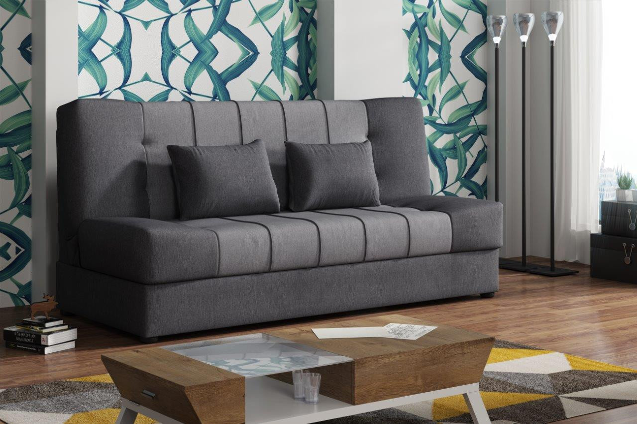 Pohovka Sun je příjemným spojením elegance, funkčnosti a atraktivní ceny. Skvěle doplní design Vašeho obývacího pokoje, ale je také vhodná např. do studentského pokoje, pracovny, nebo hostinského pokoje. Pohovka je rozkládací. Jednoduchým rozložením pomocí systému klik klak, získáte lůžko k občasnému přespání Vaší návštěvy. Samozřejmostí je i praktický úložný prostor, který můžete využít třeba na lůžkoviny. Pohovku nabízíme v několika trendy barevných provedeních. V ceně pohovky jsou 2 dekorační polštářky. Ostatní vyobrazené doplňky a dekorace nejsou v ceně. Úvodní fotografie je ilustrační. Pohovka bude dodaná v kombinaci potahových látek, které jsou vyobrazené na vzorku v doplňkových fotografiích. Zobrazení barev se může od skutečnosti lišit.