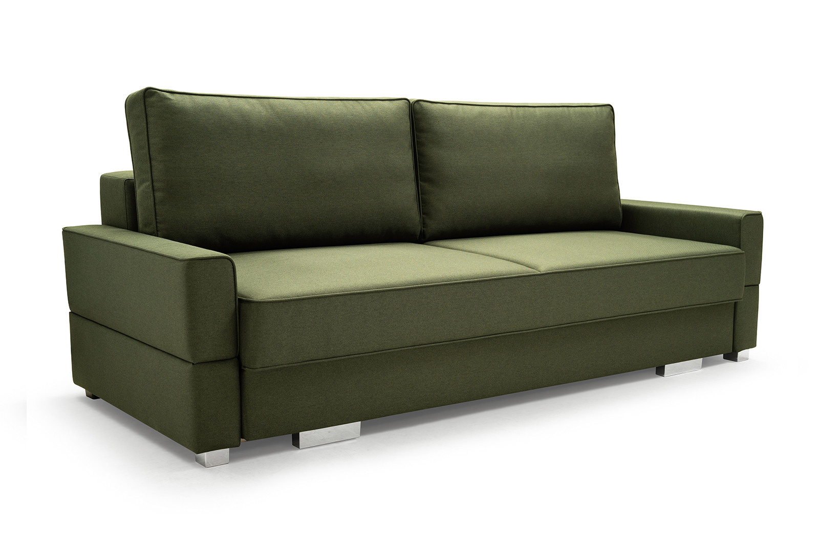Dvoumístná pohovka SUZANA je čalouněná pohovka, jejíž barvy si lze vybrat z široké škály barev podle individuálních preferencí a vzhledu uspořádaného interiéru. Stylová pohovka stojí na chromových nožkách, které dodávají konstrukci nádech modernosti. Pohovka s bočnicemi je vybavena funkcí spaní, díky níž lze tento kus nábytku kdykoli rozložit - bude praktickým kusem nábytku pro přespání hostů i příležitostným lůžkem, pokud bude umístěna v obývacím pokoji. SUZANA je vybavena prostorným úložným prostorem na lůžkoviny, ve kterém jsou všechny přikrývky, peřiny a polštáře na jednom místě. Sedák a dva polštáře na opěradle jsou vyrobeny z vlnitých pružin v kombinaci s pěnou T-30 - použité materiály zajistí nábytku odpovídající pružnost. Sedadlo se pod uživatelem nepropadává, ani se na něm nevytvoří promáčkliny nebo deformace. Moderní pohovka SUZANA bude nejen pohodlným nábytkem do obývacího pokoje, ale také prvkem, který podtrhne nadčasový charakter uspořádání obývacího pokoje.