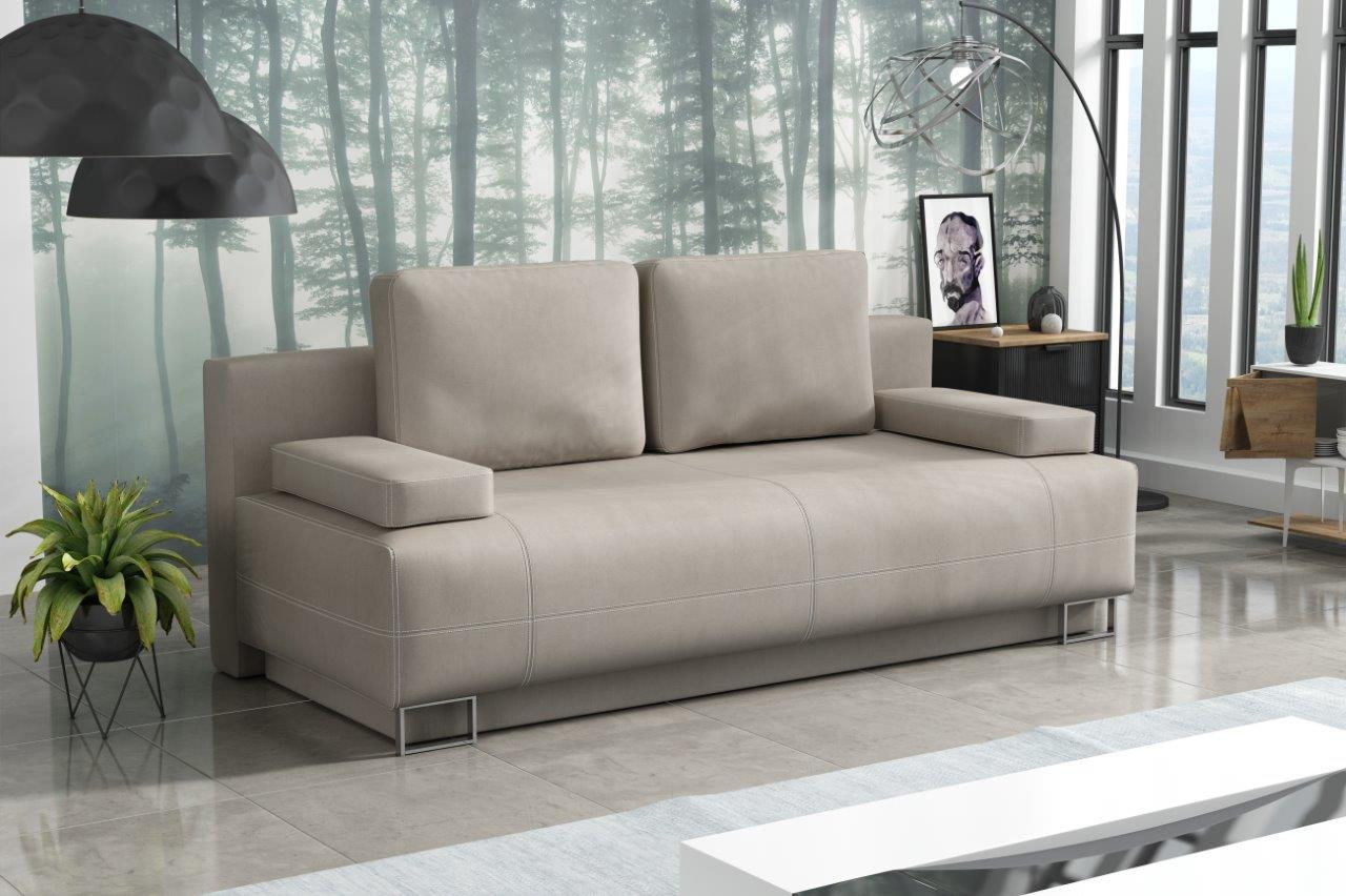 Pohovka Timmy je krásná a elegantní pohovka, která výborně zapadne do každého interiéru. Pohovka je velmi pohodlná a praktická. Praktickou stránkou pohovky je možnost rozložení - jednoduchým rozložením pomocí automatu vznikne dostatečně prostorné lůžko občasnému přespání Vaší návštěvy a samozřejmostí je také nepostradatelný úložný prostor. Pohodlí při sezení zajišťuje výpň sedáku, kterou tvoří pružiny bonell a kvalitní PUR pěna. Pohovka je potažena kvalitní voděodolnou látkou. Látka je velmi příjemná na dotek a lehce se čistí, což jistě ocení rodiny s malými dětmi nebo zvířaty. Pohovku nabízíme v několika trendy odstínech. Zobrazení barev na fotograii se může od skutečnosti lišit. Vyobrazené dopňky a dekorace nejsou v ceně.