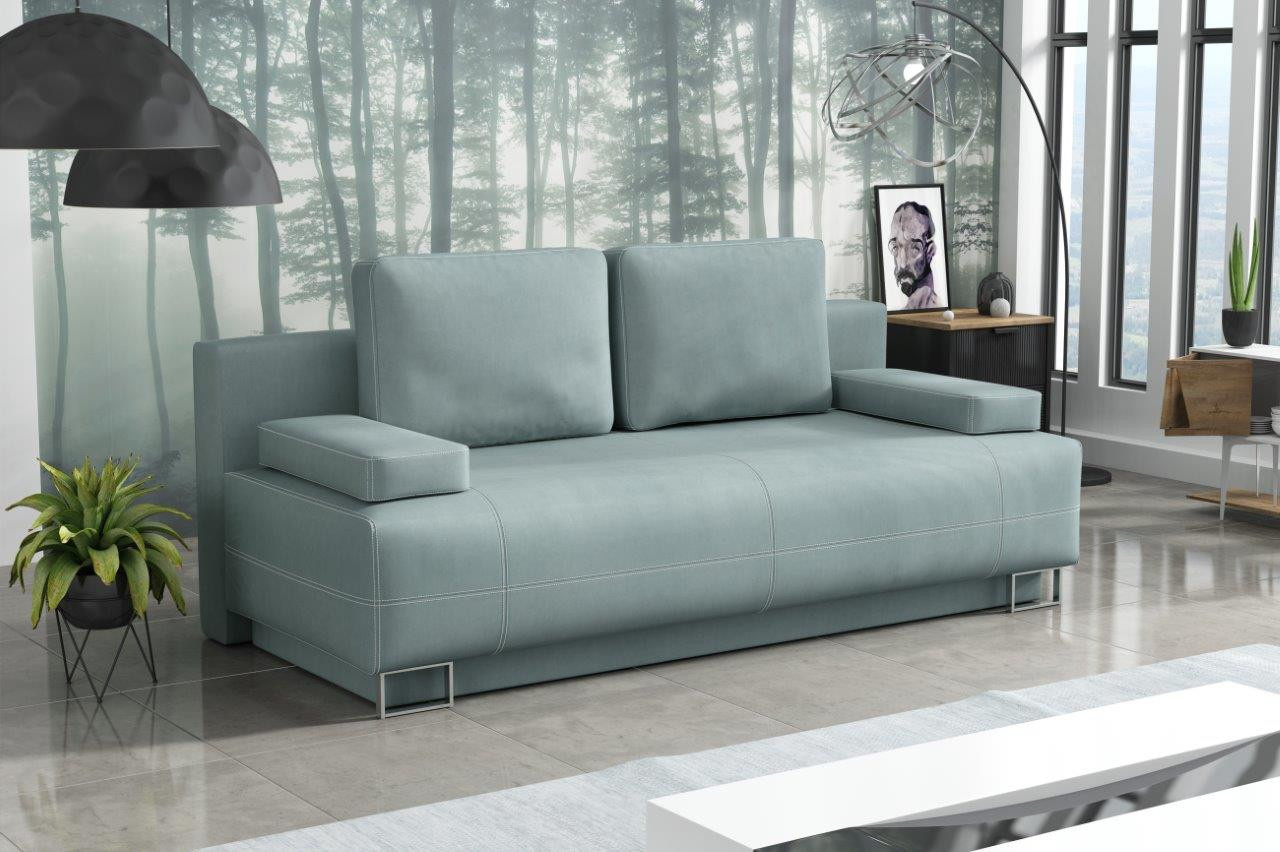 Pohovka Timmy je krásná a elegantní pohovka, která výborně zapadne do každého interiéru. Pohovka je velmi pohodlná a praktická. Praktickou stránkou pohovky je možnost rozložení - jednoduchým rozložením pomocí automatu vznikne dostatečně prostorné lůžko občasnému přespání Vaší návštěvy a samozřejmostí je také nepostradatelný úložný prostor. Pohodlí při sezení zajišťuje výpň sedáku, kterou tvoří pružiny bonell a kvalitní PUR pěna. Pohovka je potažena kvalitní voděodolnou látkou. Látka je velmi příjemná na dotek a lehce se čistí, což jistě ocení rodiny s malými dětmi nebo zvířaty. Pohovku nabízíme v několika trendy odstínech. Zobrazení barev na fotograii se může od skutečnosti lišit. Vyobrazené dopňky a dekorace nejsou v ceně.