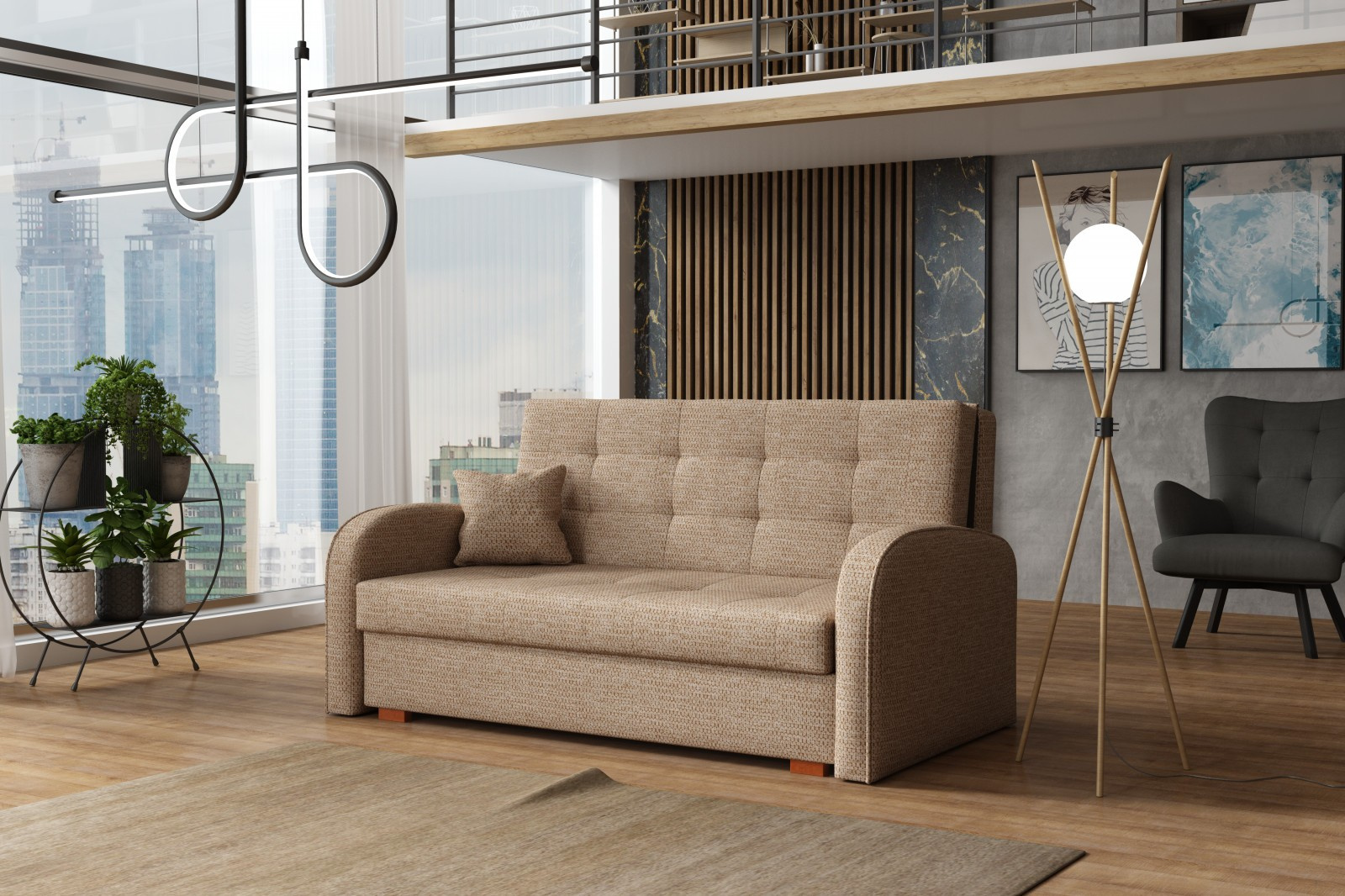 Rozkládací pohovka Vivian je díky svým rozměrům vhodná i do menších pokojů. Je vhodná do obývacího, dětského, studentského, nebo hostinského pokoje. Jednoduchým rozložením pomocí automatu, získáte lůžko k příležitostnému přespání Vaší návštěvy. Výplň sedáku tvoří vlnité pružiny v kombinaci s PUR pěnou. Pohovka je potažena kvalitní látkou a nabízíme ji v několika trendy odstínech. Pohovka disponuje i nepostradatelným úložným prostorem, který využijete např. na deku a polštář. V ceně pohovky je 1 dekorační polštář. Ostatní vyobrazené dekorace nejsou v ceně.
