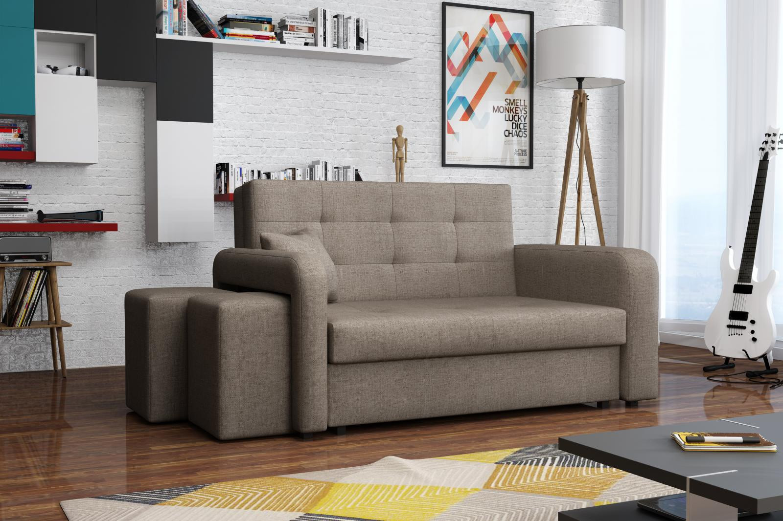Rozkládací pohovka Vivian je díky svým rozměrům vhodná i do menších pokojů. Své uplatnění najde nejen v obývacím pokoji, ale také v dětském, studentském, nebo hostinském pokoji. Jednoduchým rozložením pomocí automatu, získáte lůžko k příležitostnému přespání Vaší návštěvy. Výplň sedáku tvoří vlnité pružiny v kombinaci s PUR pěnou. Pohovka je potažena kvalitní látkou a nabízíme ji v několika trendy odstínech. Pohovka disponuje i nepostradatelným úložným prostorem, který využijete např. na deku a polštář. V ceně pohovky je 1 dekorační polštář a 2 taburety, které jsou důmyslně uložené v područi pohovky. Taburety můžety využít k sezení, nebo k podepření nohou při odpočinku. Ostatní vyobrazené dekorace nejsou v ceně. Vlivem nastavení monitorů, nebo displejů telefonů, se zobrazení barev na fotograii může od skutečnosti lišit. Vyobrazené dopňky a dekorace nejsou v ceně.