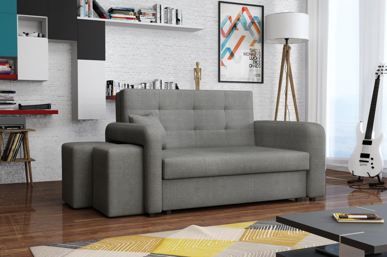 Rozkládací pohovka Vivian je díky svým rozměrům vhodná i do menších pokojů. Své uplatnění najde nejen v obývacím pokoji, ale také v dětském, studentském, nebo hostinském pokoji. Jednoduchým rozložením pomocí automatu, získáte lůžko k příležitostnému přespání Vaší návštěvy. Výplň sedáku tvoří vlnité pružiny v kombinaci s PUR pěnou. Pohovka je potažena kvalitní látkou a nabízíme ji v několika trendy odstínech. Pohovka disponuje i nepostradatelným úložným prostorem, který využijete např. na deku a polštář. V ceně pohovky je 1 dekorační polštář a 2 taburety, které jsou důmyslně uložené v područi pohovky. Taburety můžety využít k sezení, nebo k podepření nohou při odpočinku. Ostatní vyobrazené dekorace nejsou v ceně. Vlivem nastavení monitorů, nebo displejů telefonů, se zobrazení barev na fotograii může od skutečnosti lišit. Vyobrazené dopňky a dekorace nejsou v ceně.