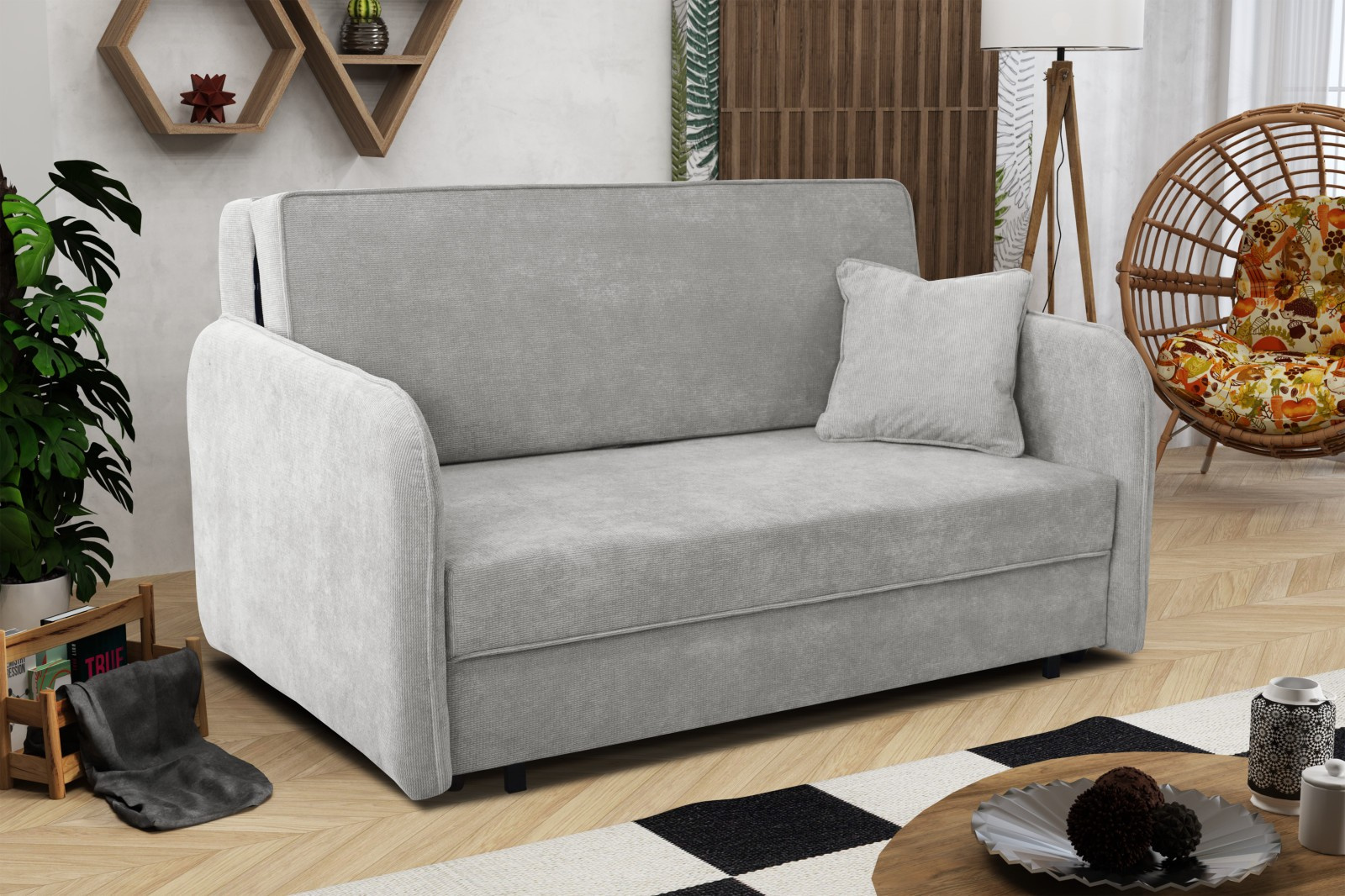 Rozkládací pohovka Vivian Loft III je díky svým rozměrům vhodná i do menších pokojů. Své uplatnění najde nejen v obývacím pokoji, ale také v dětském, studentském, nebo hostinském pokoji. Jednoduchým rozložením pomocí automatu, získáte lůžko k příležitostnému přespání Vaší návštěvy. Výplň sedáku tvoří vlnité pružiny v kombinaci s PUR pěnou. Pohovka je potažena kvalitní látkou a nabízíme ji v několika trendy odstínech. Pohovka disponuje i nepostradatelným úložným prostorem, který využijete např. na deku a polštář. V ceně pohovky je 1 dekorační polštář. Ostatní vyobrazené dekorace nejsou v ceně.