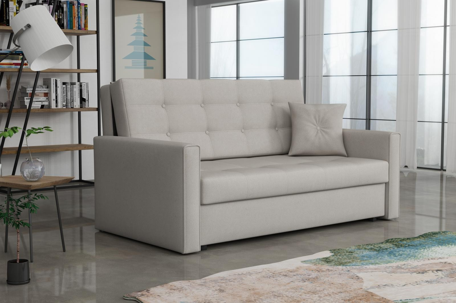 Rozkládací pohovka Vivian je díky svým rozměrům vhodná i do menších pokojů. Je vyrobena v jednoduchém a zároveň elegantním designu, který se hodí do všech interiérů. Můžete ji umístit do obývacího, dětského, studentského, nebo hostinského pokoje. Jednoduchým rozložením pomocí automatu, získáte lůžko k příležitostnému přespání Vaší návštěvy. Výplň sedáku tvoří vlnité pružiny v kombinaci s PUR pěnou. Pohovka je potažena kvalitní látkou a nabízíme ji v několika trendy odstínech. Pohovka disponuje i nepostradatelným úložným prostorem, který využijete např. na deku a polštář. V ceně pohovky je 1 dekorační polštář. Ostatní vyobrazené dekorace nejsou v ceně.