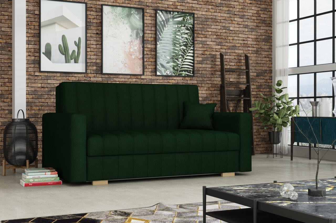 Rozkládací pohovka Vivian je díky svým rozměrům vhodná i do menších pokojů. Své uplatnění najde nejen v obývacím pokoji, ale také v dětském, studentském, nebo hostinském pokoji. Jednoduchým rozložením pomocí automatu, získáte lůžko k příležitostnému přespání Vaší návštěvy. Výplň sedáku tvoří vlnité pružiny v kombinaci s PUR pěnou. Pohovka je potažena kvalitní látkou a nabízíme ji v několika trendy odstínech. Pohovka disponuje i nepostradatelným úložným prostorem, který využijete např. na deku a polštář. V ceně pohovky je 1 dekorační polštář. Ostatní vyobrazené dekorace nejsou v ceně. Zobrazení barev na fotograii se může od skutečnosti lišit.
