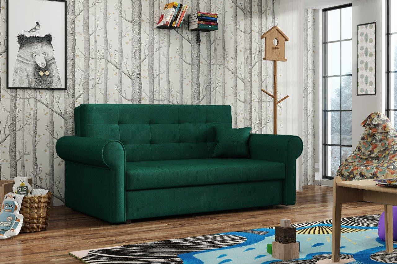 Rozkládací pohovka Vivian je díky svým rozměrům vhodná i do menších pokojů. Své uplatnění najde nejen v obývacím pokoji, ale také v dětském, studentském, nebo hostinském pokoji. Jednoduchým rozložením pomocí automatu, získáte lůžko k příležitostnému přespání Vaší návštěvy. Výplň sedáku tvoří vlnité pružiny v kombinaci s PUR pěnou. Pohovka je potažena kvalitní látkou a nabízíme ji v několika trendy odstínech. Pohovka disponuje i nepostradatelným úložným prostorem, který využijete např. na deku a polštář. V ceně pohovky je 1 dekorační polštář. Ostatní vyobrazené dekorace nejsou v ceně. Zobrazení barev na fotografii se může od skutečnosti lišit.