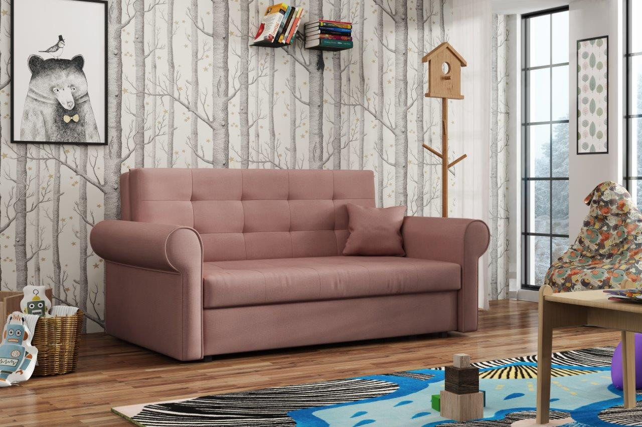 Rozkládací pohovka Vivian je díky svým rozměrům vhodná i do menších pokojů. Své uplatnění najde nejen v obývacím pokoji, ale také v dětském, studentském, nebo hostinském pokoji. Jednoduchým rozložením pomocí automatu, získáte lůžko k příležitostnému přespání Vaší návštěvy. Výplň sedáku tvoří vlnité pružiny v kombinaci s PUR pěnou. Pohovka je potažena kvalitní látkou a nabízíme ji v několika trendy odstínech. Pohovka disponuje i nepostradatelným úložným prostorem, který využijete např. na deku a polštář. V ceně pohovky je 1 dekorační polštář. Ostatní vyobrazené dekorace nejsou v ceně. Zobrazení barev na fotografii se může od skutečnosti lišit.