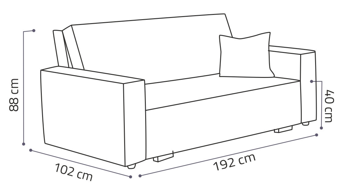 Pohovka je vhodná do dětského, studentského, nebo hostinského pokoje. Jednoduchým rozložením pomocí automatu, získáte lůžko k příležitostnému přespání Vaší návštěvy, nebo kamaráda Vašich dětí. Výplň sedáku tvoří vlnité pružiny v kombinaci s PUR pěnou. Pohovka je potažena kvalitní látkou s výběrem několika trendy odstínů. Pohovka disponuje i nepostradatelným úložným prostorem, který využijete např. na deku a polštář. Ostatní vyobrazené doplňky a dekorace nejsou v ceně. Zobrazení barev na fotografii se může od skutečnosti lišit.