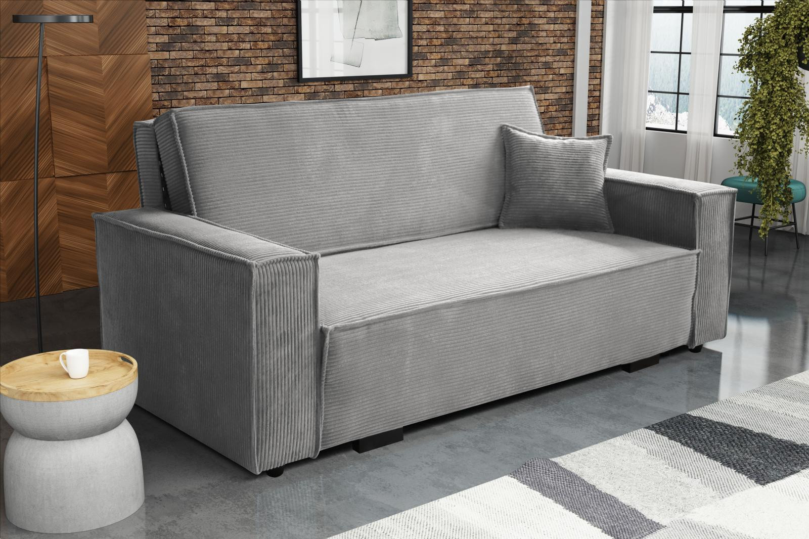 Pohovka je vhodná do dětského, studentského, nebo hostinského pokoje. Jednoduchým rozložením pomocí automatu, získáte lůžko k příležitostnému přespání Vaší návštěvy, nebo kamaráda Vašich dětí. Výplň sedáku tvoří vlnité pružiny v kombinaci s PUR pěnou. Pohovka je potažena kvalitní látkou s výběrem několika trendy odstínů. Pohovka disponuje i nepostradatelným úložným prostorem, který využijete např. na deku a polštář. Ostatní vyobrazené doplňky a dekorace nejsou v ceně. Zobrazení barev na fotografii se může od skutečnosti lišit.