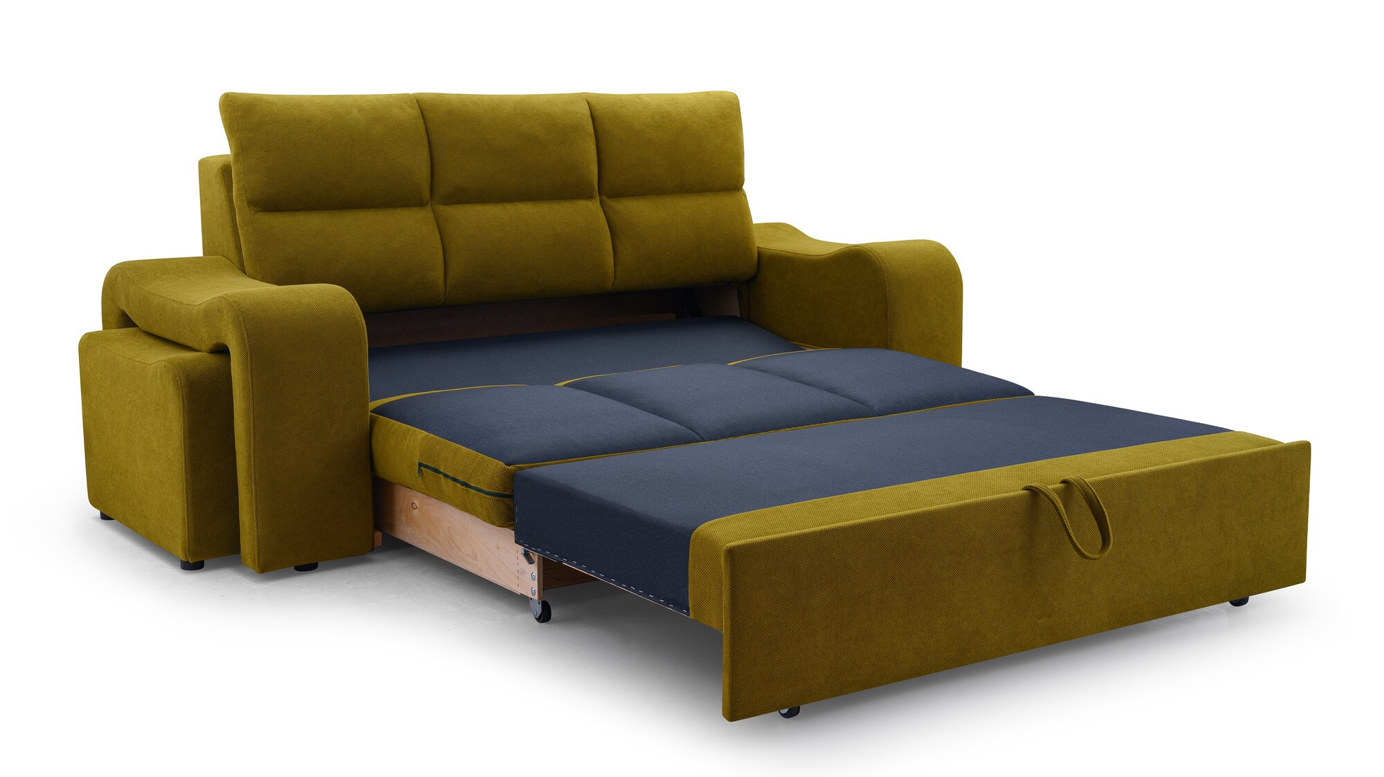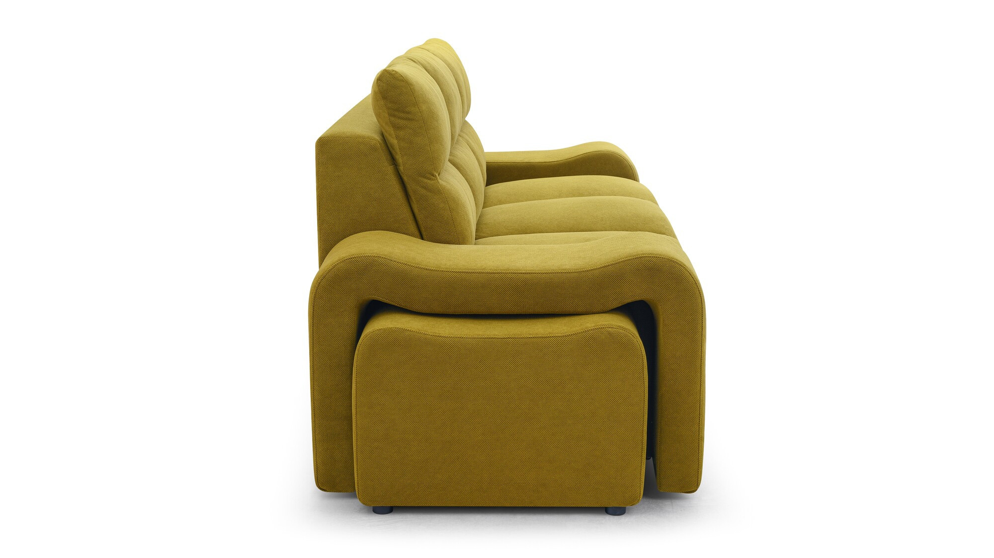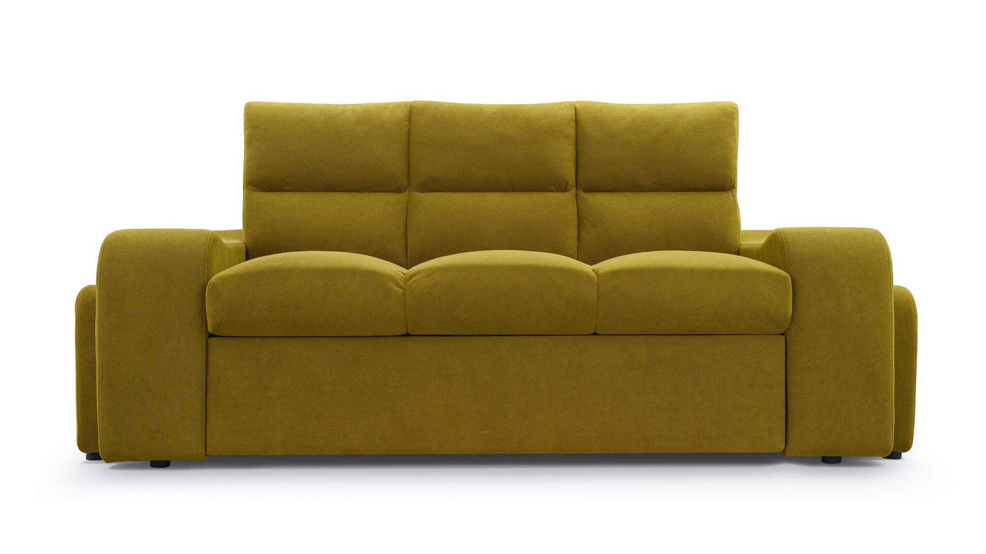 WELA je masivní pohovka s originálním designem, která se skvěle hodí do moderně zařízeného obývacího pokoje pro volný čas. Tvarovaná pohovka stojí na nízkých chromovaných nožkách, které nábytku dodávají moderní nádech. Boční rozkládací pohovka je vybavena funkcí automatického asistovaného rozkládání, díky které můžete pohovku rychle a efektivně proměnit v pohodlné a bezpečné lůžko. Pohovka WENUS s funkcí spaní má zabudovaný úložný prostor na taburety - souprava obsahuje dva taburety, které lze použít jako další sedadlo, a praktické podnožky při odpočinku. Pohovka s bočnicemi je navíc vybavena prostorným úložným prostorem na lůžkoviny, do kterého lze snadno uložit přikrývky, polštáře a další předměty denní potřeby. Představený model se vyrábí na speciální objednávku, takže si můžete vybrat z široké škály barev látek, díky nimž můžete nábytek dokonale sladit s uspořádanou místností.