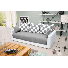 Moderní pohovka XARA je rozkládací kus nábytku vyrobený na míru a vybavený úložným prostorem na lůžkoviny, do kterého se snadno vejde spoustu drobností či lůžkovin. Tuto volně stojící pohovku lze čalounit látkou v široké škále barev; v základním provedení jsou vložky pohovky vyrobeny z bílé ekokůže. Pohovka je vybavena automatickým asistovaným systémem rozkládání, díky kterému ji každý zvládne rychle rozložit nebo složit bez větších problémů. Pohovka je umístěna na dřevěném rámu, který zaručuje její odolnost a stabilitu. Sedák i opěrák pohovky jsou vyplněny vlnitou pružinou a pěnou, díky čemuž si kus nábytku zachová patřičnou pružnost - ani při častém používání na něm nevzniknou nevzhledné otlaky. Pohovka s praktickými bočnicemi na opěradle je vybavena pohyblivými polštáři, které budou plnit nejen dekorativní funkci, ale také zajistí správnou oporu zad.