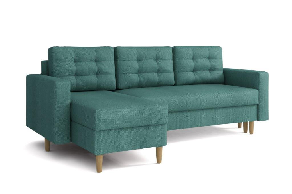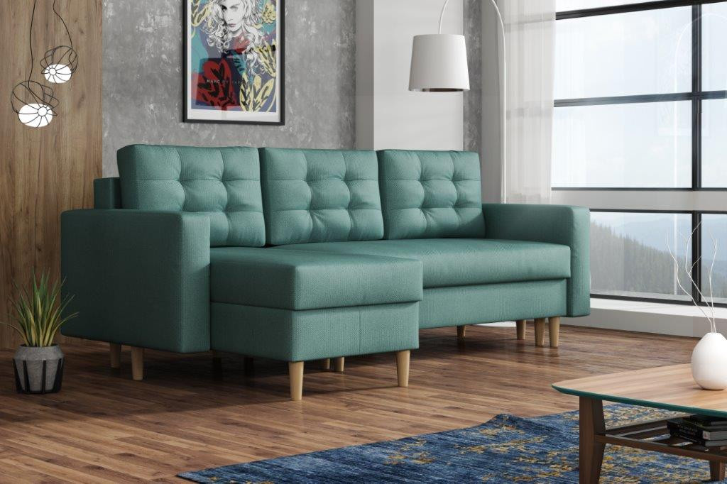 Sedací souprava Anabel je krásným designovým RETRO kouskem, který výborně zapadne do moderního i klasického interiéru. Retro design podtrhují dřevěné nohy a vtahy na opěrných polštářích. Její velkou předností je pohodlí, praktičnost a univerzální použití. Tzn. že si ji můžete podle potřeby sestavit jako levou nebo pravou, což je výhoda při zařizování obývacího pokoje. Nemusíte přemýšlet do jakého rohu postavíte sedací soupravu, jednoduše ji podle potřeby přizpůsobíte. Sedací souprava je rozkládací a může tak sloužit k občasnému přespání Vaší návštěvy. Samozřejmostí je i praktický úložný prostor, který je v obou částech sedačky a můžete ho využít např. na lůžkoviny. Sedací souprava je potažena látkou a nabízíme v několika oblíbených barvách. Výplň sedáků tvoří kombinace pružin s kvalitní PUR pěnou, což zajišťuje velmi pohodlné sezení. Sedací souprava je vhodná i do menších pokojů. Vyobrazené doplňky a dekorace nejsou v ceně. Zobrazení barev produktu na fotograii se může nepatrně lišit od skutečnosti.
