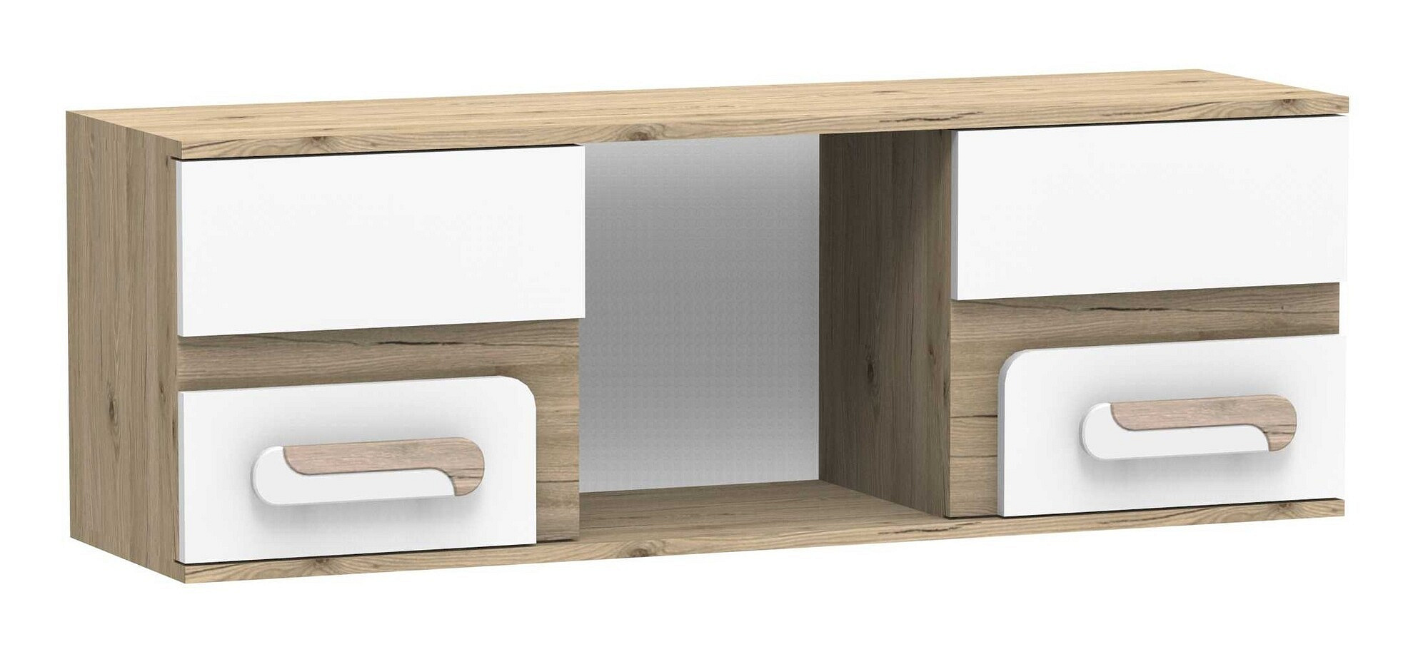 Nábytek APETITO je vyroben z kvalitního lamina o tloušťce 16 mm, což zajišťuje jeho pevnost a dlouhou životnost. Povrchová úprava v kombinaci dubu a bílé barvy dodává skříni moderní a svěží vzhled, který se snadno hodí do jakéhokoli interiéru.