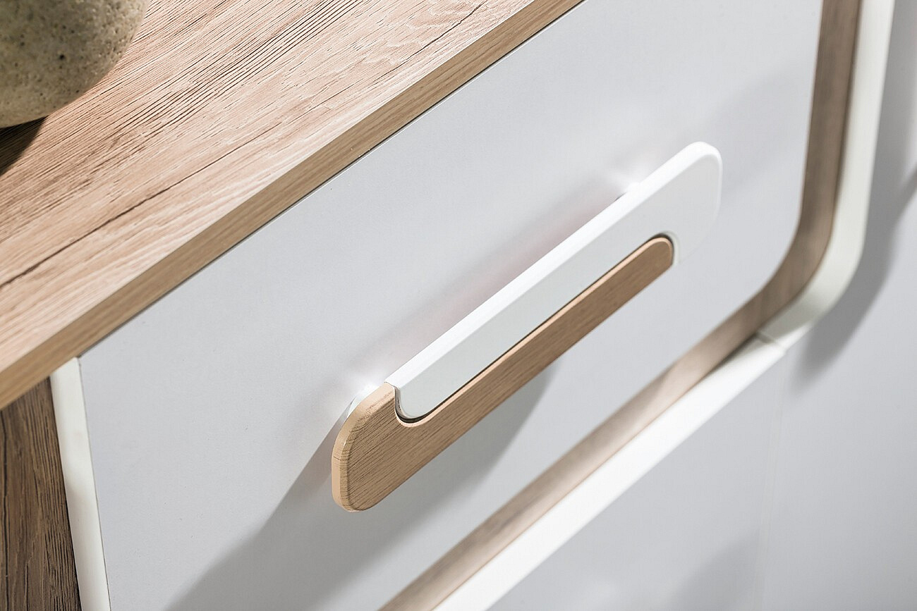 - Úchytky: Nábytek je vybavena úchytkami ze syntetického materiálu, které jsou nejen odolné, ale také příjemné na dotek. Jejich moderní design přispívá k celkovému estetickému dojmu.