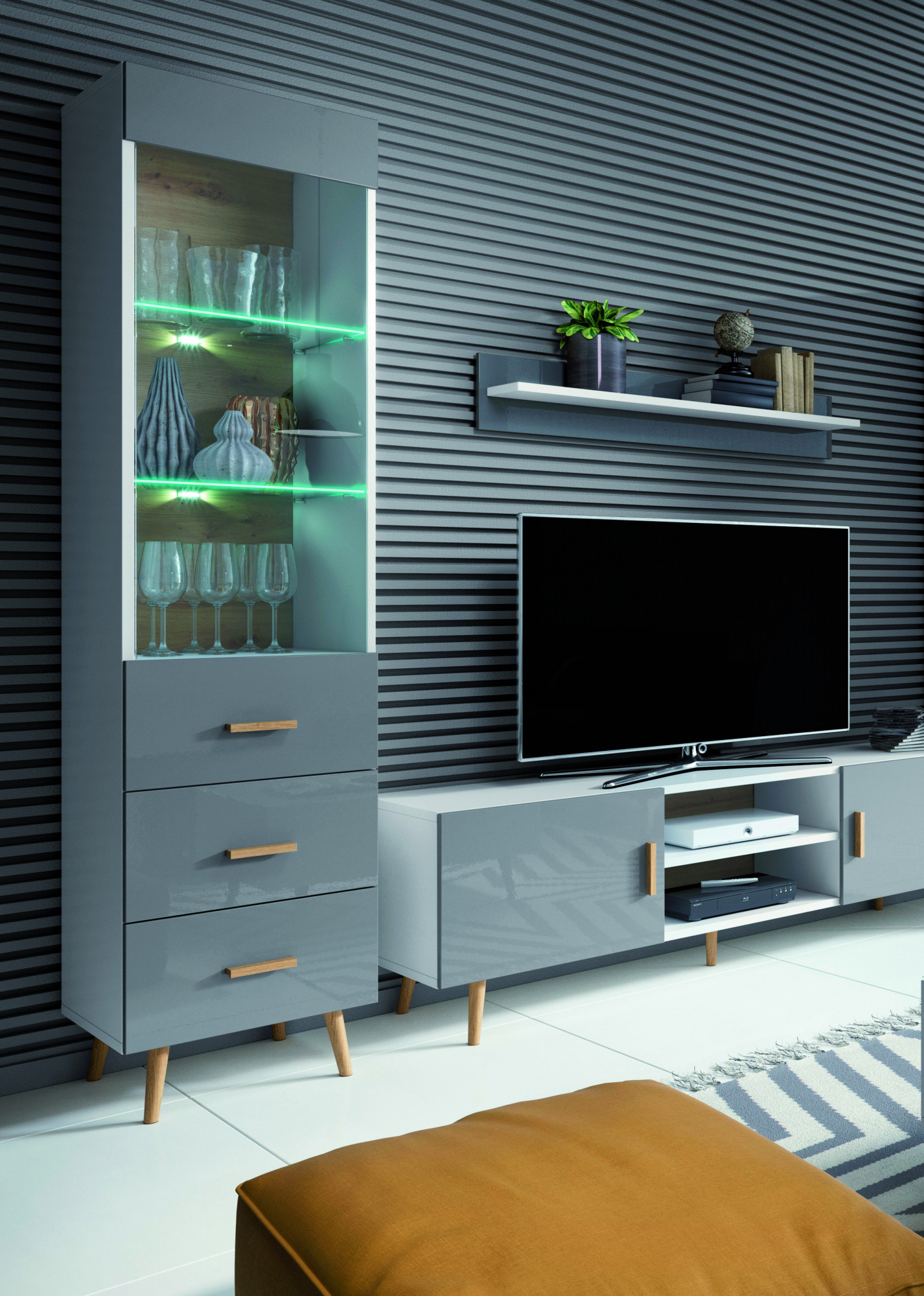 Systém Brillo je vyroben ve skandinávském stylu a vyznačuje se dřevěnými nožkami, úchyty a lakovanými dvířky. Nábytek Brillo se hodí do klasického i moderního interiéru. Nábytek Brillo se vyrábí v barevném provedení korpusu bílý mat v kombinaci s dvířky v barevném provedení šedý lak - vysoký lesk. Nožky, úchyty, záda a dna šuplíků jsou v barevném provedení Dub Artisan. Nově je nábytek Brillo vyráběn v barevném provedení korpusu Dub Ribeck v kombinaci s dvířky v barevném provedení Bílý Mat.