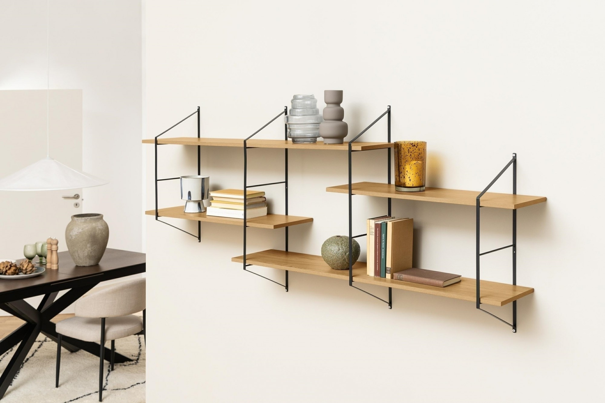 Regál Belfast 2 je skvělým řešením pro ty, kteří mají rádi pořádek. Konstrukce byla vyrobena z kovu lakovaného práškovou barvou na černo. Poličky jsou z MDF desky s dýhou v barvě divokého dubu. Poličky lze uspořádat v libovolné konfiguraci. Počet kartonů: 1 Rozměry kartonů: 112x14,5x28cm Hmotnost kartonů: 13,4kg