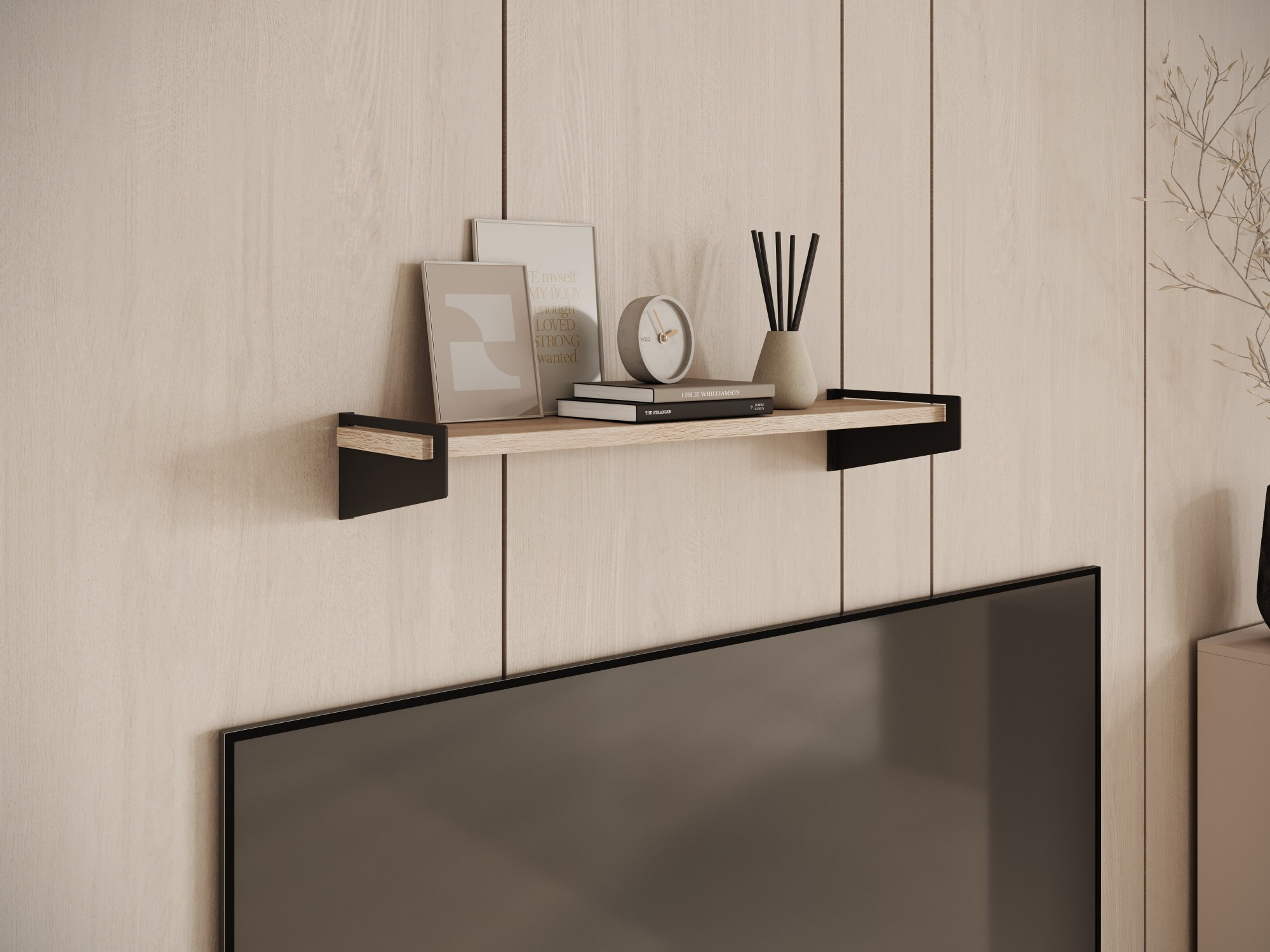 Polička Ivi je stylový a funkční prvek vybavení interiéru, dostupný v široké škále barev, která umožňuje přizpůsobit ji různým stylům aranžmá. Jednoduchá konstrukce s kovovými podpěrami po stranách dodává polici moderní, industriální vzhled a zároveň zajišťuje její stabilitu a odolnost. Ideální do obývacího pokoje, ložnice nebo kanceláře, Police Ivi představuje jak praktické místo pro ukládání, tak zajímavý dekorativní prvek.