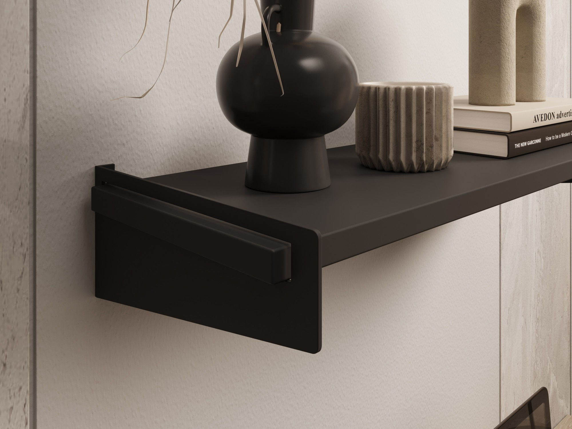 Polička Ovo je moderní a stylový doplněk do interiérů, který se vyznačuje originálním designem a vysokou kvalitou zpracování. Charakteristický, zaoblený tvar police vnáší do prostoru harmonii a jemnost, dodávajíc mu jedinečný styl. Tento model byl navržen s ohledem na milovníky minimalistického designu, kteří oceňují estetiku spojenou s funkčností. Kovové boční úchyty dodávají polici Ovo nejen stabilitu, ale také sofistikovaný charakter. Díky bohaté paletě barev úchytů – od klasických odstínů, jako je černá nebo bílá, po výraznější barvy, jako je hluboká zelená, námořnická modrá, nebo módní, metalické povrchy – se polička Ovo stává dekorativním prvkem, který lze snadno přizpůsobit různorodým interiérovým aranžmá. Polička se skvěle prezentuje jak v obytných prostorech, jako je obývací pokoj, ložnice nebo předsíň, tak i v moderních kancelářích či pracovnách. Polička Ovo s kovovými úchyty je návrh pro ty, kteří hledají elegantní a zároveň funkční řešení pro ukládání a vystavování předmětů.