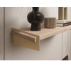 Polička Ovo je moderní a stylový doplněk do interiérů, který se vyznačuje originálním designem a vysokou kvalitou zpracování. Charakteristický, zaoblený tvar police vnáší do prostoru harmonii a jemnost, dodávajíc mu jedinečný styl. Tento model byl navržen s ohledem na milovníky minimalistického designu, kteří oceňují estetiku spojenou s funkčností. Kovové boční úchyty dodávají polici Ovo nejen stabilitu, ale také sofistikovaný charakter. Díky bohaté paletě barev úchytů – od klasických odstínů, jako je černá nebo bílá, po výraznější barvy, jako je hluboká zelená, námořnická modrá, nebo módní, metalické povrchy – se polička Ovo stává dekorativním prvkem, který lze snadno přizpůsobit různorodým interiérovým aranžmá. Polička se skvěle prezentuje jak v obytných prostorech, jako je obývací pokoj, ložnice nebo předsíň, tak i v moderních kancelářích či pracovnách. Polička Ovo s kovovými úchyty je návrh pro ty, kteří hledají elegantní a zároveň funkční řešení pro ukládání a vystavování předmětů.