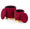 rozměry: 40/44 a 33/38 cm, sada 2 pufů, látka: látka / chromovaná ocel, barva: vínová / zlatá