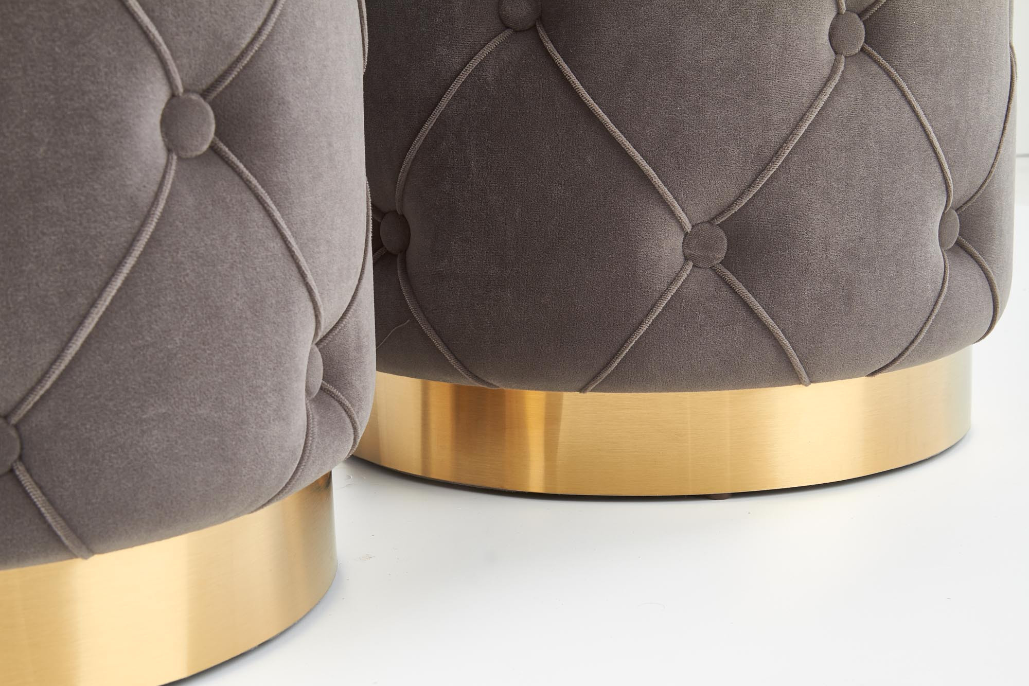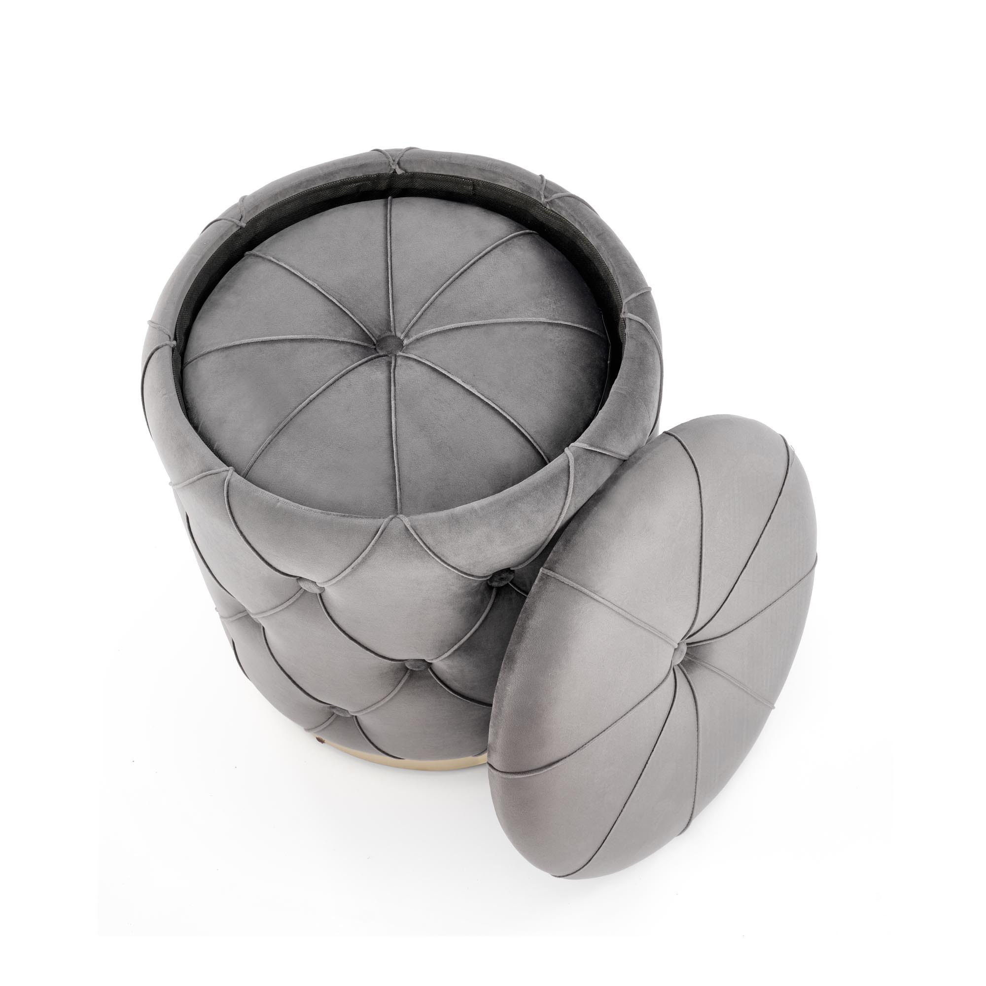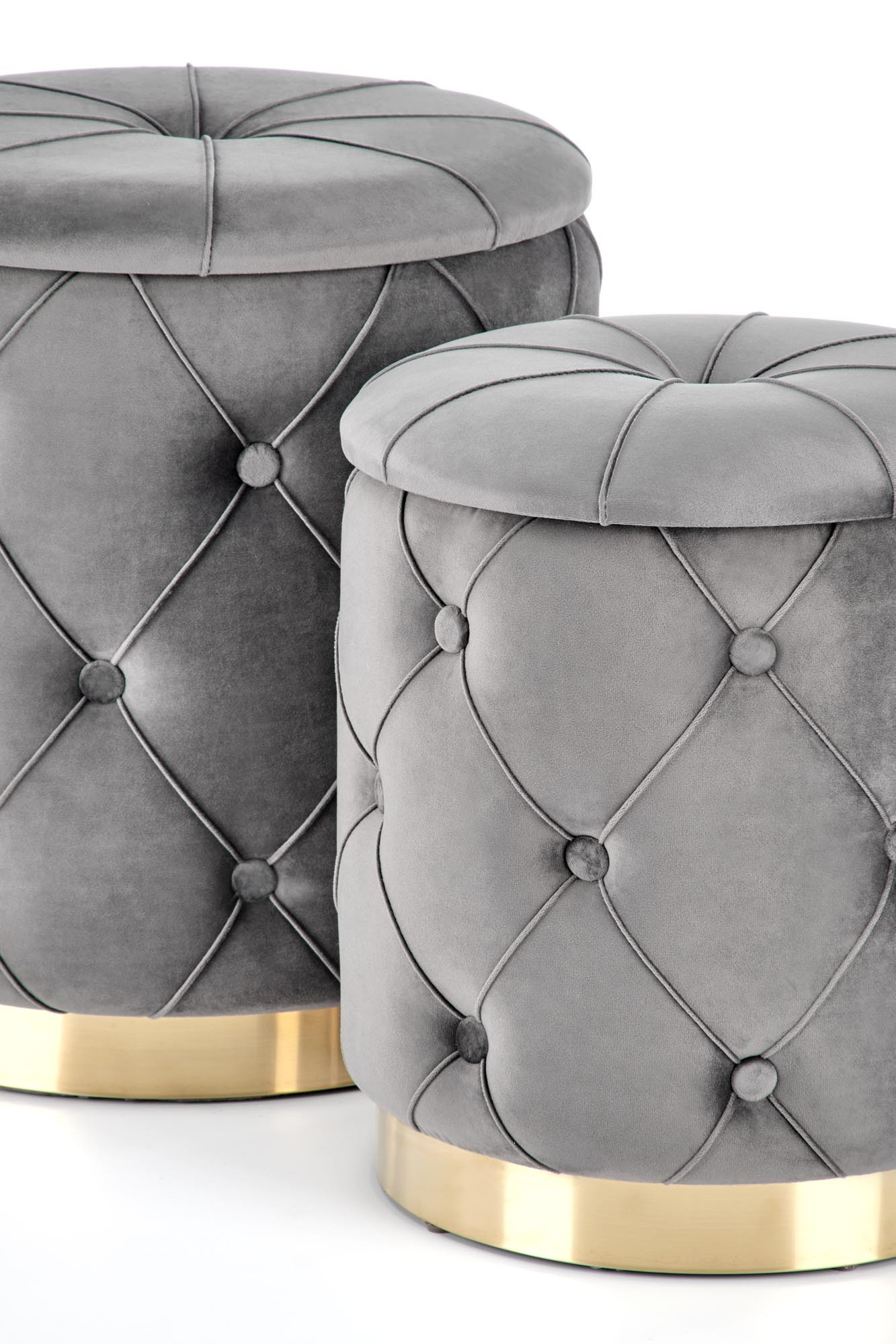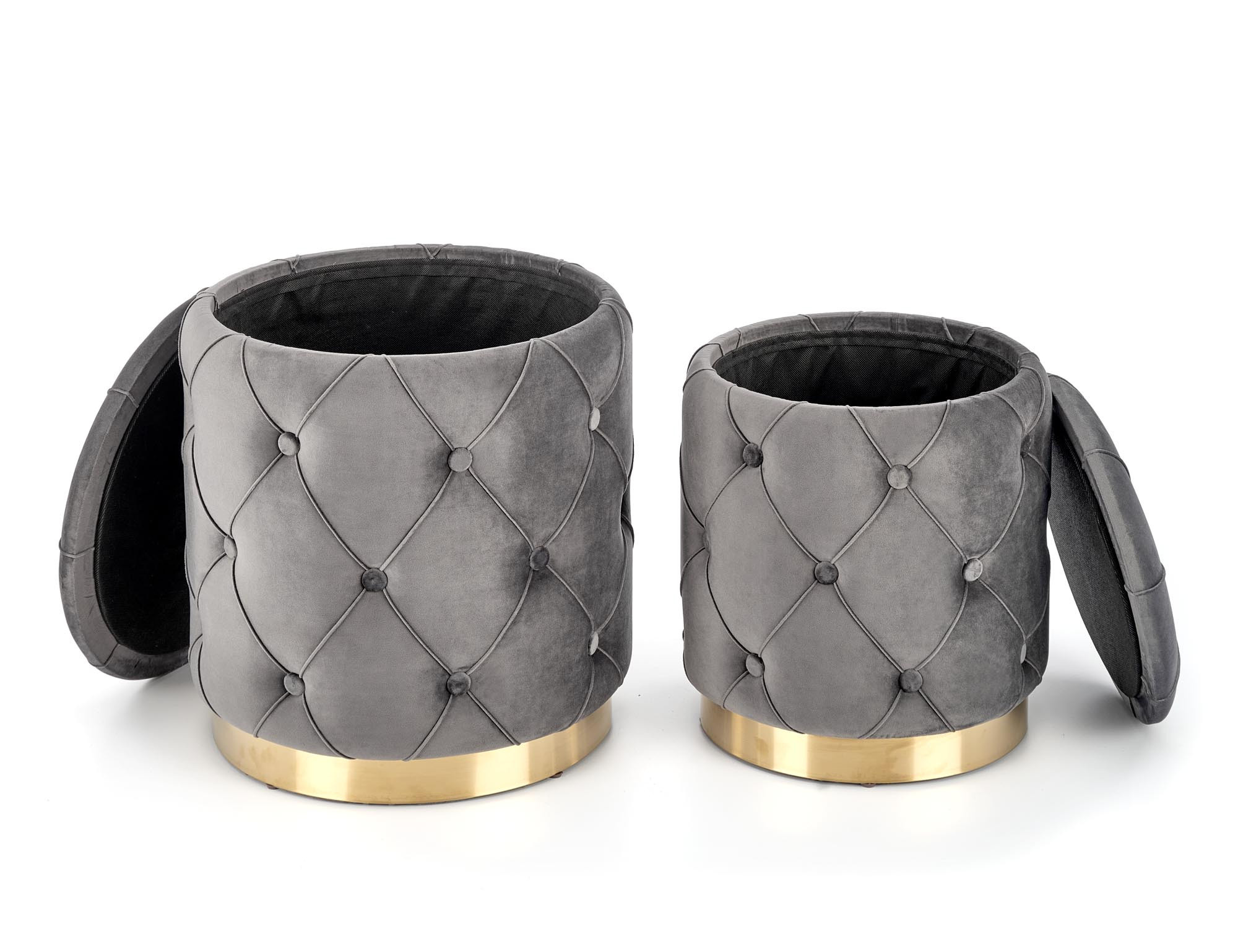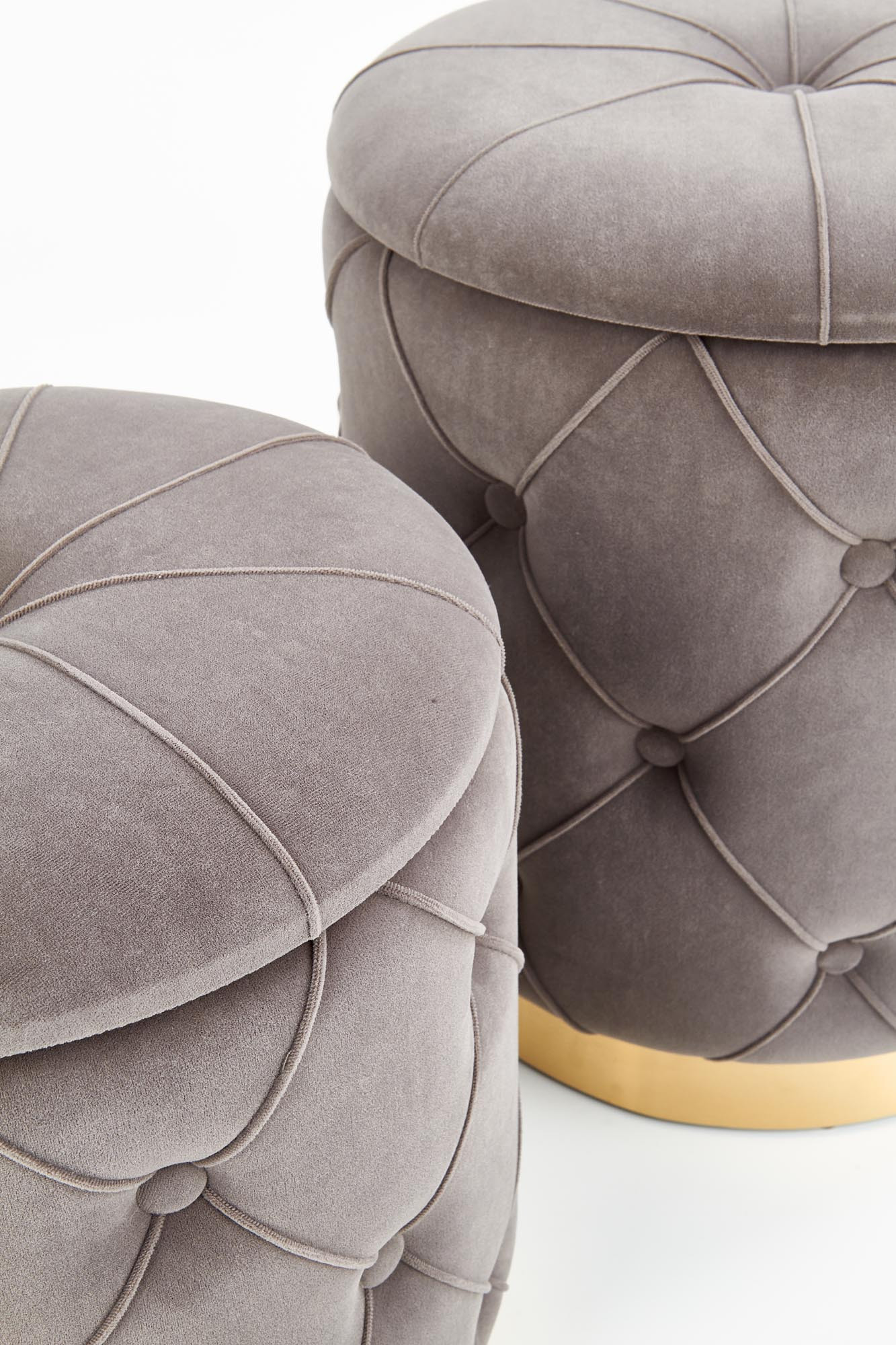rozměry: 40/44 a 33/38 cm, sada 2 pufů, látka: látka / chromovaná ocel, barva: šedá / zlatá