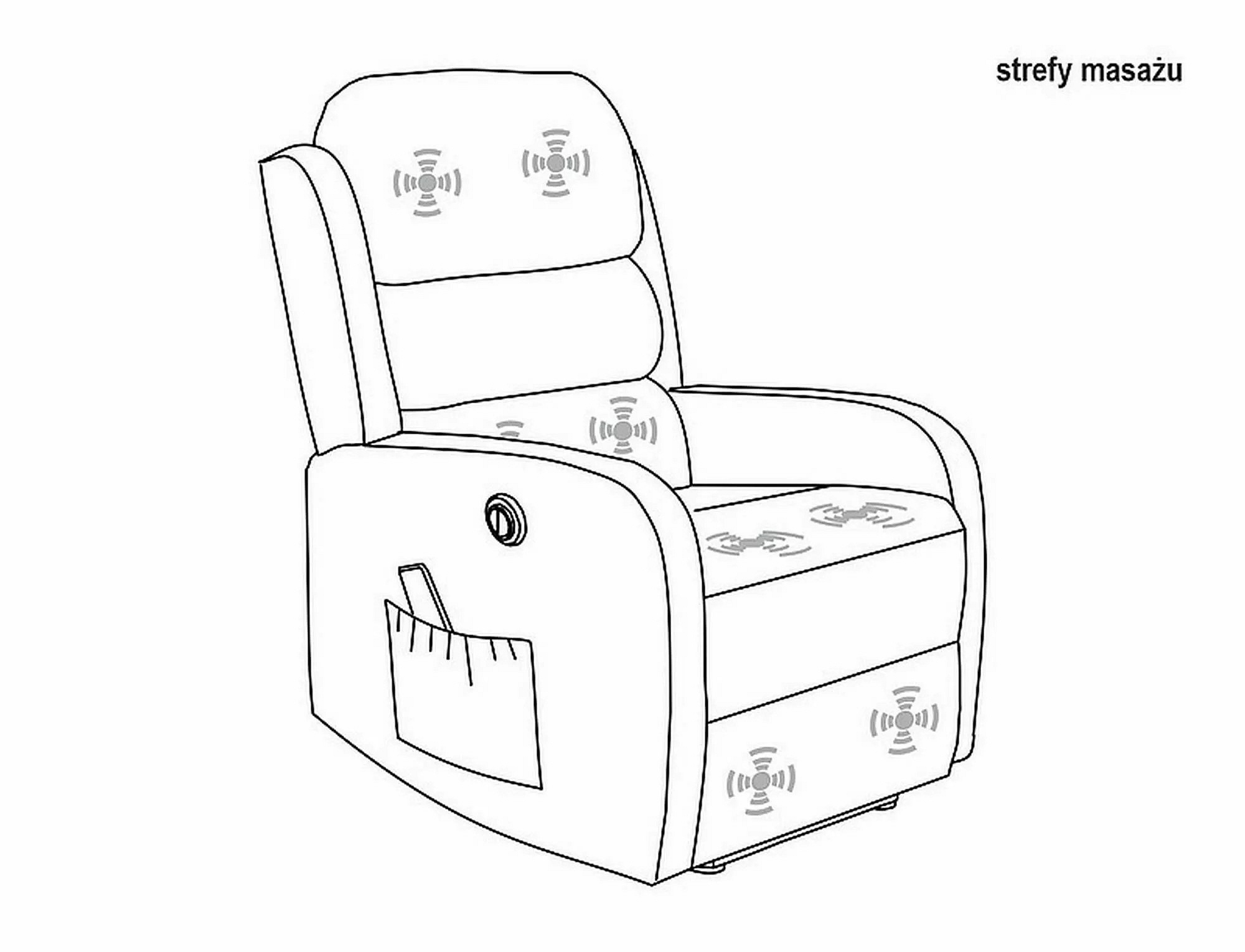 Relaxační polohovatelné křeslo PEGAZ s masážní funkcí má elektrické ovládání, které je umístěno na boku křesla.