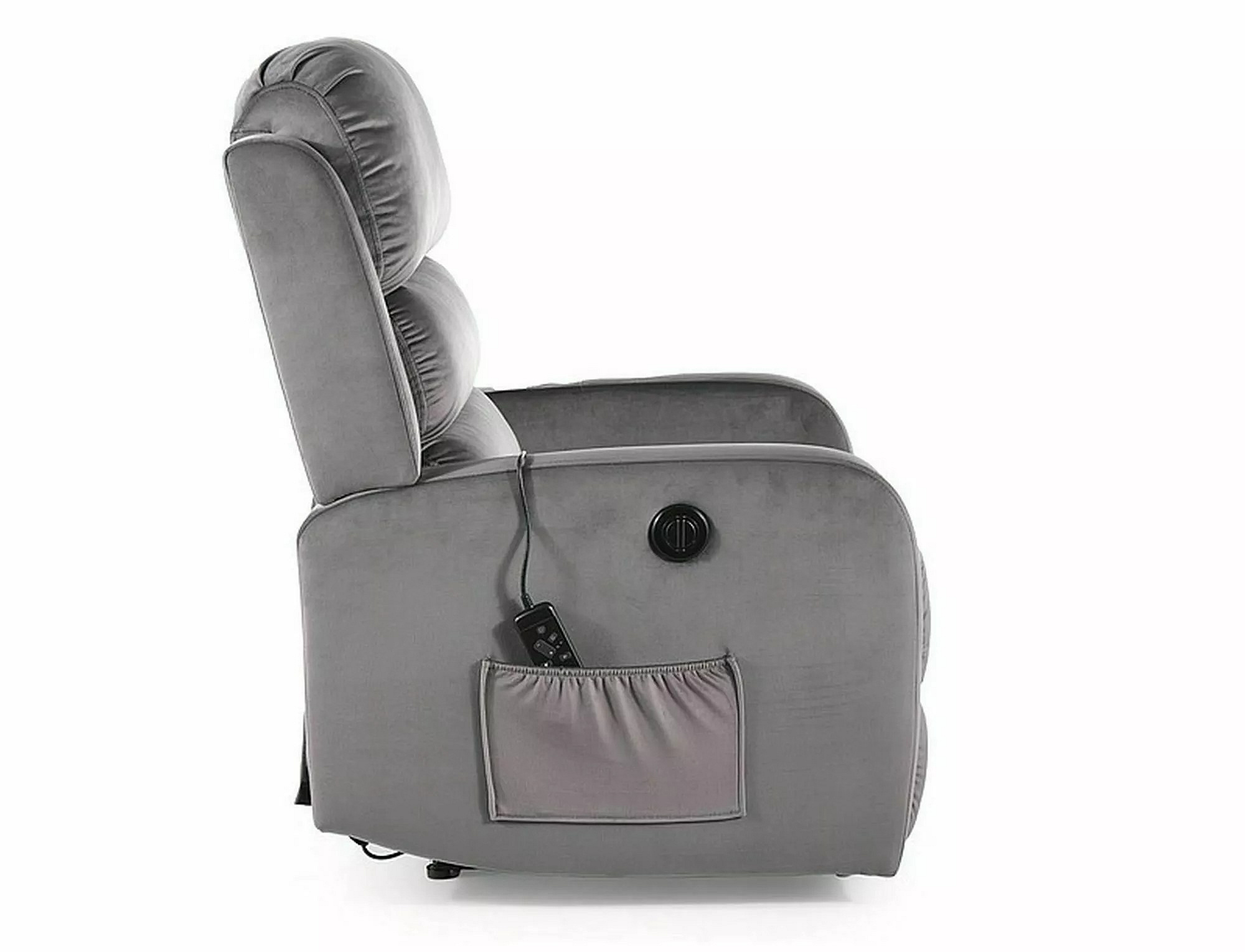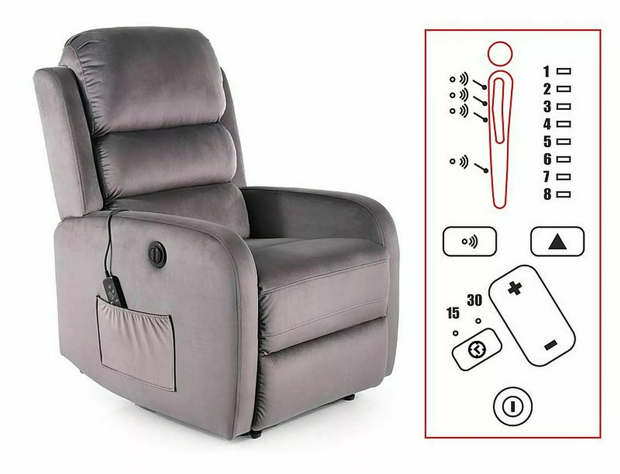 Masážní polohovací křeslo PEGAZ VELVET M, šedá