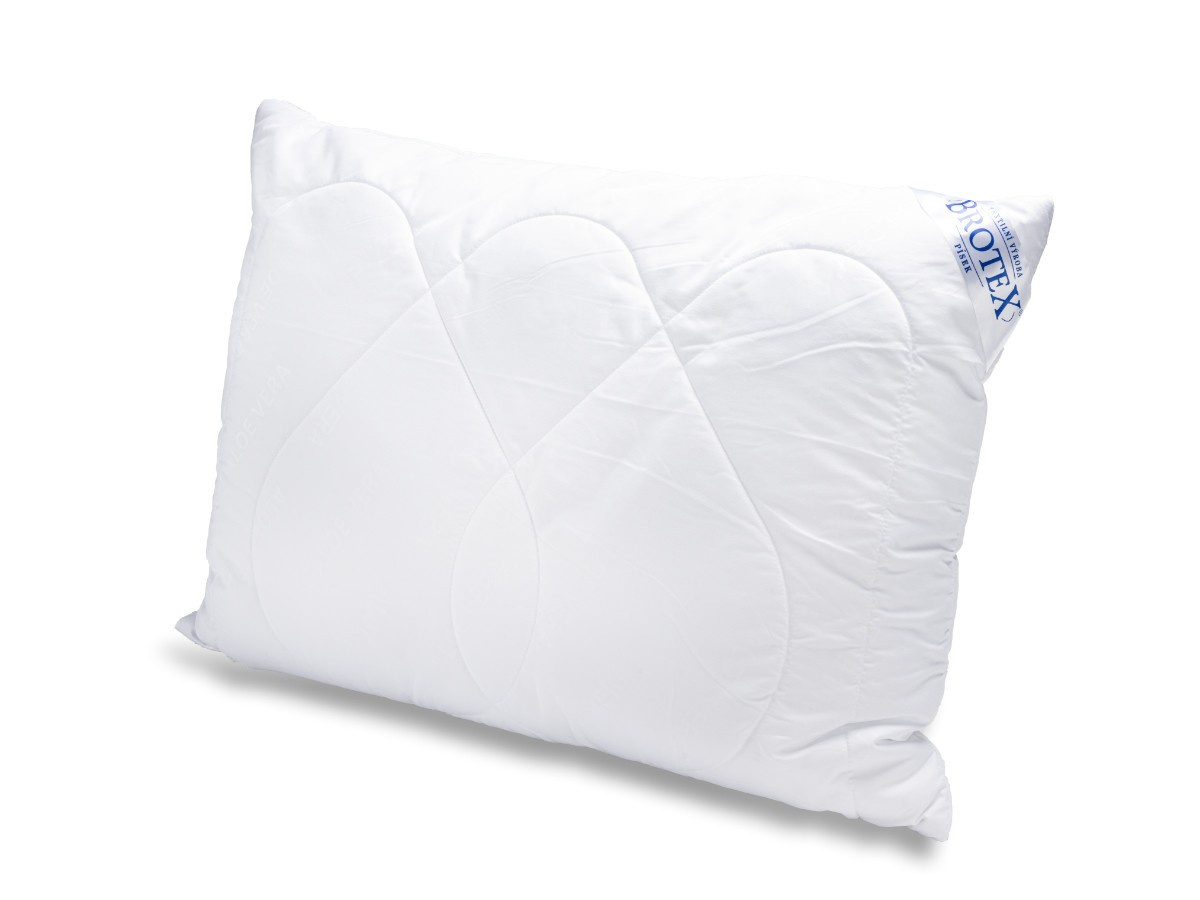 Tento polštář obsahuje vysoce kvalitní značkové kuličkové duté vlákno UNICO, které je určeno specielně pro výrobu protialergických polštářů. Polštáře se díky těmto kvalitním kuličkám dají snadno naklepat a nemění tvar. Kuličkové vlákno je uvnitř prošitého korpusu, který je prošitý ( látka, rouno, netkaná textilie ). Netkaná textilie je velmi důležitým materiálem u polštářů. Hlavní funkcí tohoto materiálu je zabránění spojení rouna s kuličkovým vláknem. Polštář je opatřen zipovým uzávěrem, pro možnost doplnění či odebrání části výplně dle potřeby zákazníka. .Povrchovým materiálem je 100% polyester - mikrovlákno s výtažky z rostliny Aloe Vera. Aloe Vera příznivě působí na lidskou pokožku, má schopnost zmírňovat bolesti kloubů a svalů. Během užívání postupně uvolňuje extrakty ze svých vláken, které mají výrazný antibakteriální efekt, tudíž bezpečně zaručí hubení bakterií a roztočů. Přispívá k uvolnění těla, relaxaci a ničím nerušenému klidnému spánku. Polštář je vhodný pro alergiky a astmatiky.