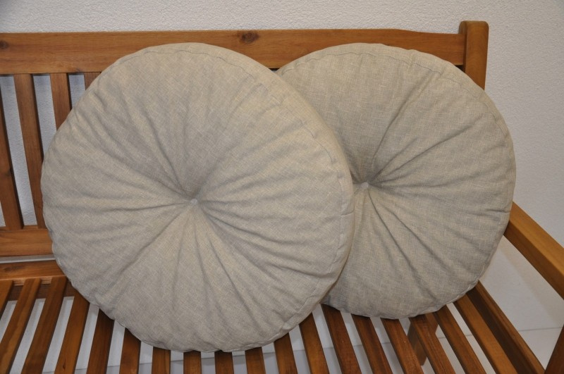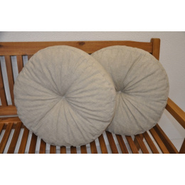 Set 2 kusů velkých kruhových polštářů. | Set dvou kusů praktických designových polštářů. Průměr polštáře je 50 cm. Tloušťka polštáře je přibližně 10 - 12 cm. Polštář je vyplněný polyuretanovou drtí.
