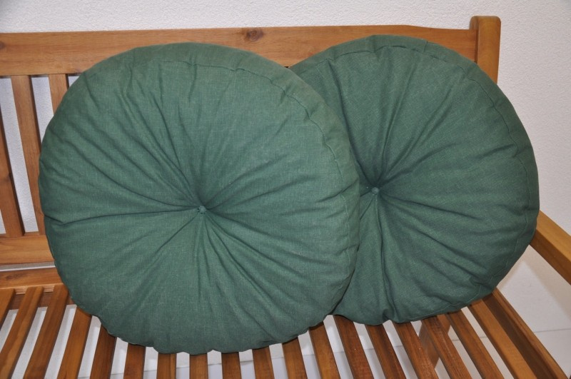 Set 2 kusů velkých kruhových polštářů. | Set dvou kusů praktických designových polštářů. Průměr polštáře je 50 cm. Tloušťka polštáře je přibližně 10 - 12 cm. Polštář je vyplněný polyuretanovou drtí.