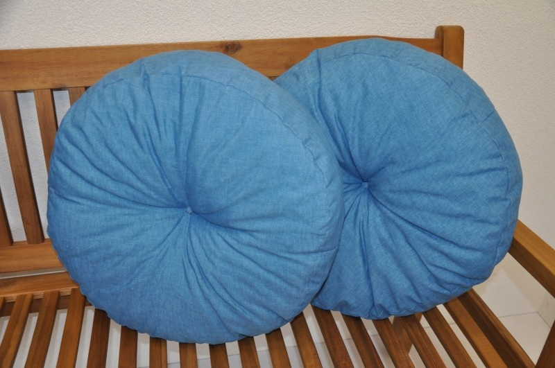 Set 2 kusů velkých kruhových polštářů. | Set dvou kusů praktických designových polštářů. Průměr polštáře je 50 cm. Tloušťka polštáře je přibližně 10 - 12 cm. Polštář je vyplněný polyuretanovou drtí.