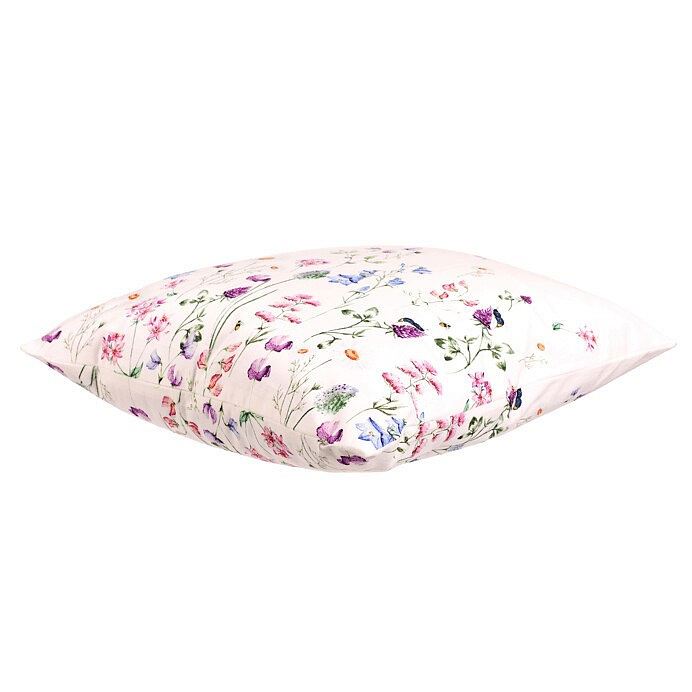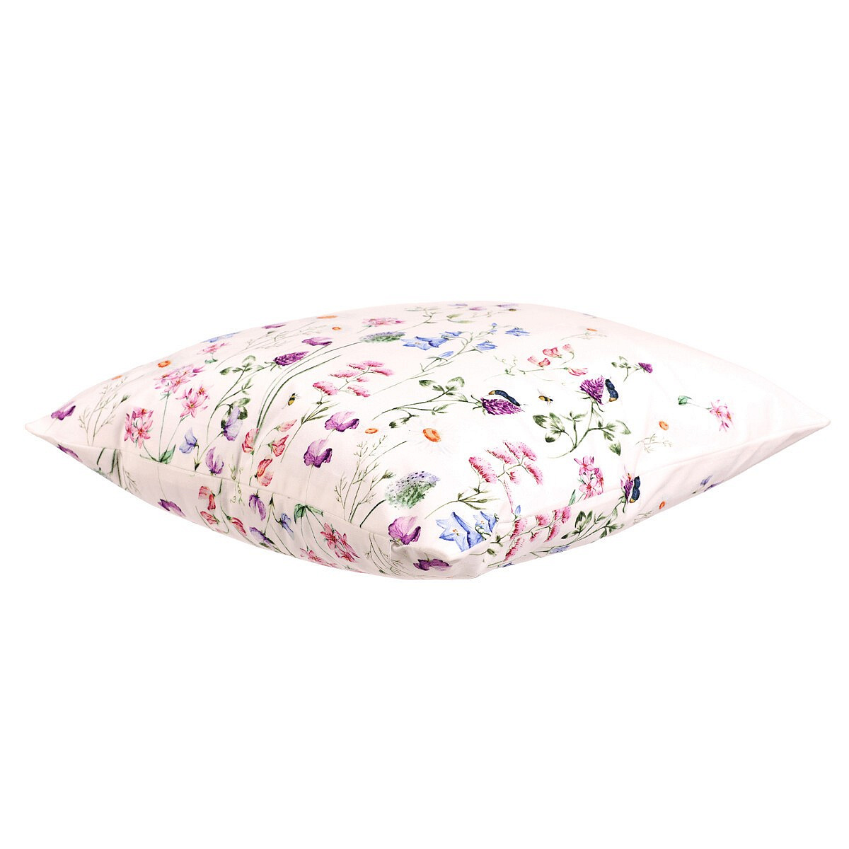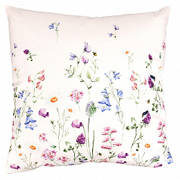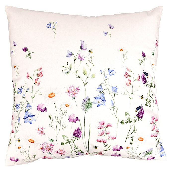 Polštář s výplní - barevné luční kvítí, bílý základ, sametový, 45 x 45 cm