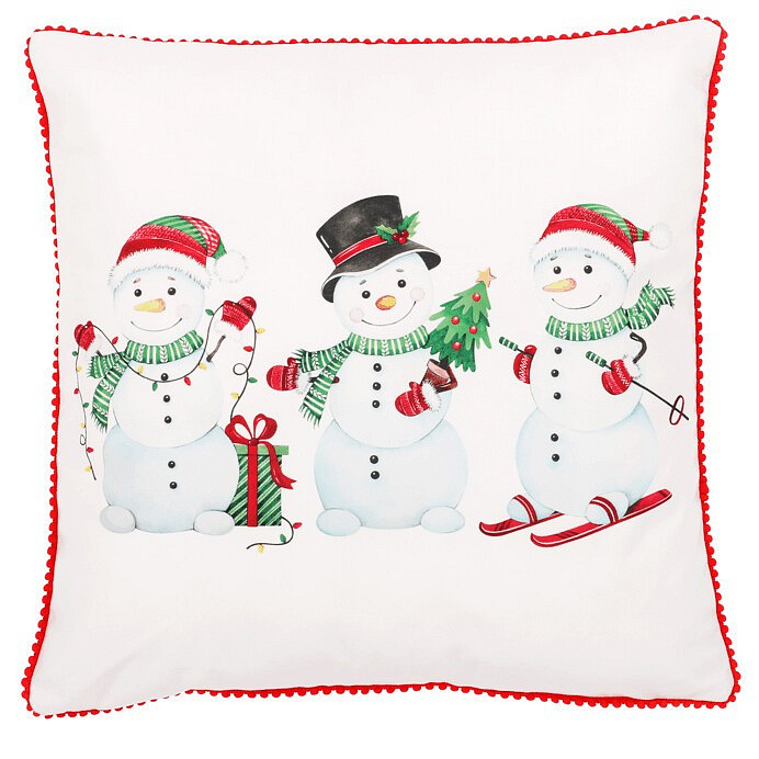 Polštář s výplní – sametový, se sněhuláky, 45 x 45 cm
