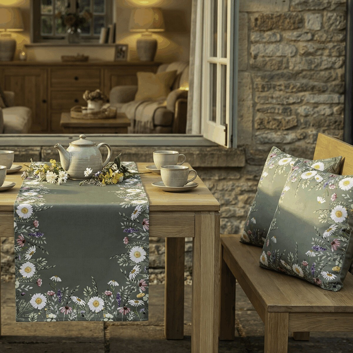 Sametový polštář s výplní v zeleném odstínu zdobí jemný vzor lučních květin, který přináší do interiéru přírodní atmosféru. Povrch z polyesteru 100 % je příjemný na dotek a snadno se udržuje, zatímco výplň zajišťuje pohodlnou oporu. Rozměr 45 x 45 cm je vhodný pro použití na pohovky, křesla nebo postele, kde doplní dekorativní styl i komfort. Polštář vynikne v kombinaci s dalšími textiliemi v přírodních tónech a přispívá k útulnosti prostoru.