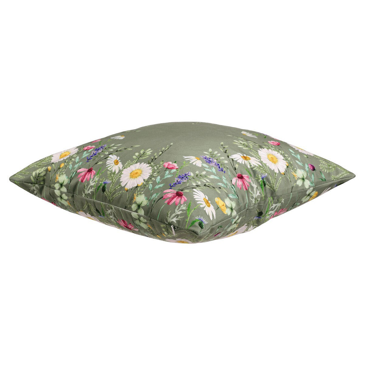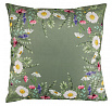 Polštář s výplní - vzor lučních květin, zelený, sametový, 45 x 45 cm