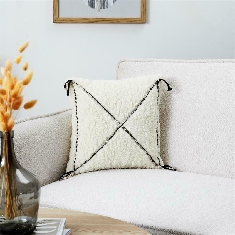 Polštář Sherpa bílý s černým vzorem