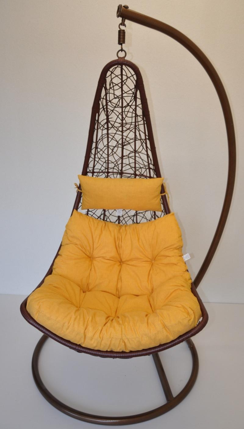 Samostatný polstr na závěsnou houpačku Margarita. | Samostatný polstr na závěsnou houpačku z umělého ratanu. Polstr je vhodný na závěsnou houpačku margarita případně i jinou houpačku podobné konstrukce a tvaru. Tak, jak se směrem k horní části zužuje houpačka, zužuje se i polstr. Šířka polstru na spodní straně ( na okraji houpačky ) je 85 cm. Šířka polstru na horní užší straně je 70 cm. Polstr je vysoký ( možná lépe řečeno dlouhý ) 95 cm. Polštářek pod hlavu je široký 45 cm a 20 cm vysoký. Polstr je plněný drceným molitanem. Pro výrobu polstru je použita kvalitní látka a standardem je vysoká kvalita zpracování.