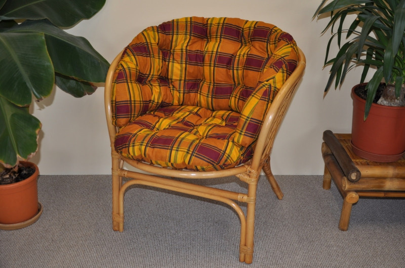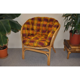 Samostatný polstr na křeslo bahama v barevném provedení dle obrázku. Polstr se skládá ze sedáku a opěradla, které je po celé šířce křesla a lemuje područky. | Polstr je vhodný na křeslo Bahama. Materiál potahové látky je 100% bavlna. Výplň polstru je drcený molitan. Polstr lze prát ručně na 40oC nebo čistit v čistírně. Sedák je kruhový a má průměr 50 cm. Opěrka je široká 106 cm a její výška je 37 cm (uprostřed).