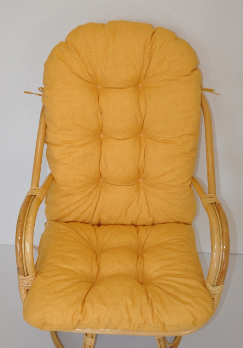 Samostatný polstr na otočné křeslo Havai. | Polstr je vhodný na otočná nebo houpací křesla s tvarem podobným našemu křeslo Havai. Velikost polstru je: Celková délka polstru je 128 cm. Polstr je prošitý v místě dělení na sedací a opěradlovou část. Délka sedací části je 50 cm, délka opěradlové části je 78 cm. Šířka polstru je 56 cm. Polstr je opatřen tkanicemi v barvě látky pro snadné upevnění ke křeslu. Polstr je plněn drceným molitanem a je možné ho prát na 40o C nebo čistit v čistírně. Polstr je vyrobený v České republice