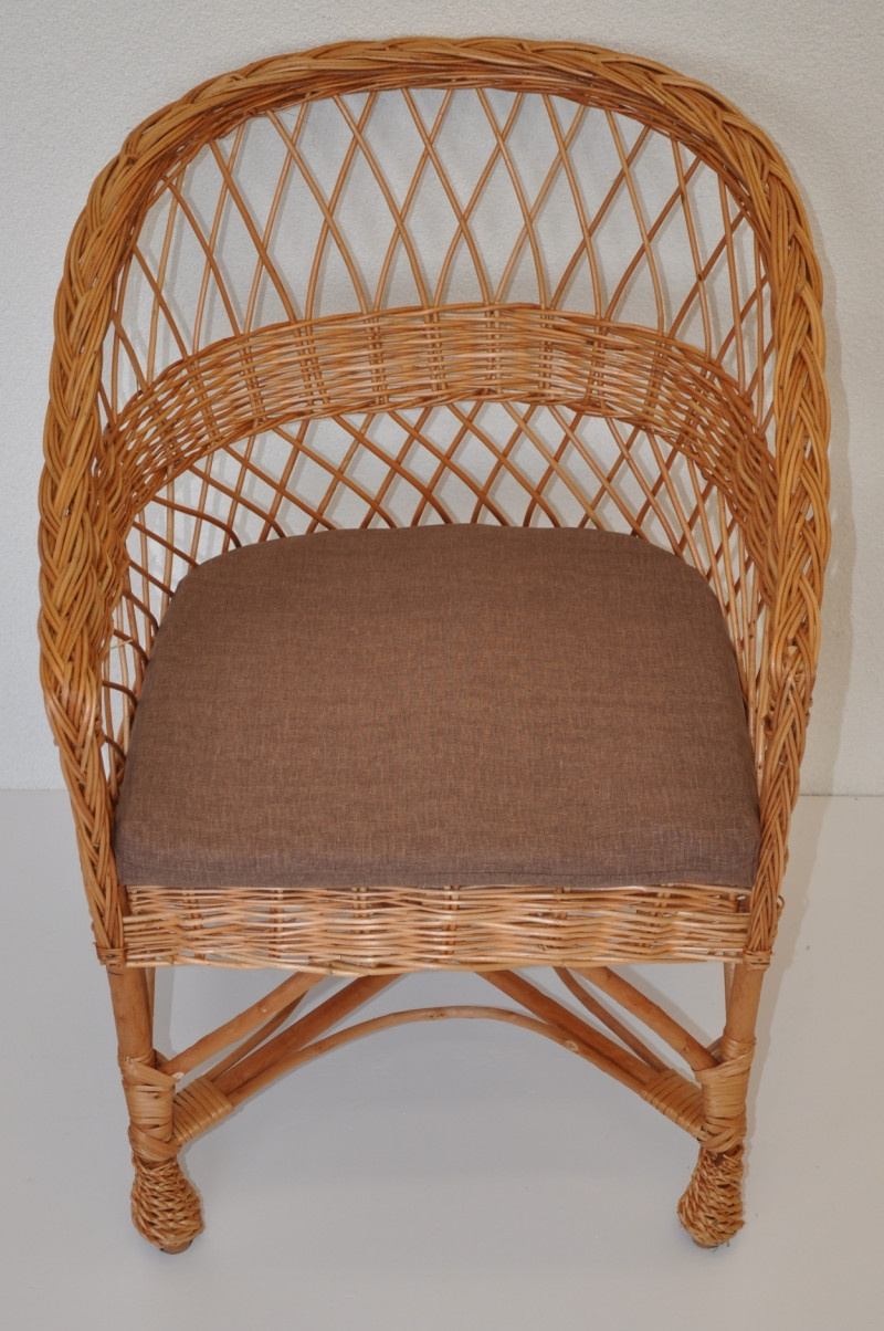 Samostatný polstr na křesla z vrbového proutí. | Polstr je vhodný na křesla, která jsou vyráběna z vrbového proutí v Polsku. Křesla z vrbového proutí se povětšinou liší ve tvaru a rozmanitosti výpletu, ale velikost sedací části je v mnoha případech stejná, a je možné použít námi prodávaný polstr. Velikost polstru je: šíře 46 cm, hloubka 45 cm. Polstr je plněný dutým polyeterovým vláknem. Polstr je opatřen tkanicemi ve stejné barvě látky pro snadné uchycení ke konstrukci křesla.