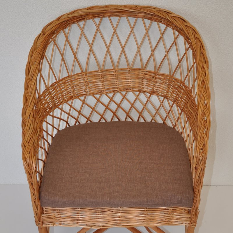 Polstr na křeslo z vrbového proutí - látka hnědý melír