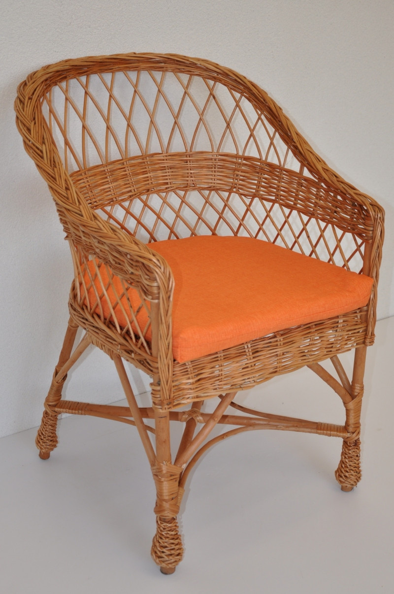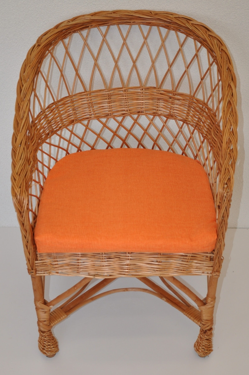 Polstr na křeslo z vrbového proutí - látka oranžový melír