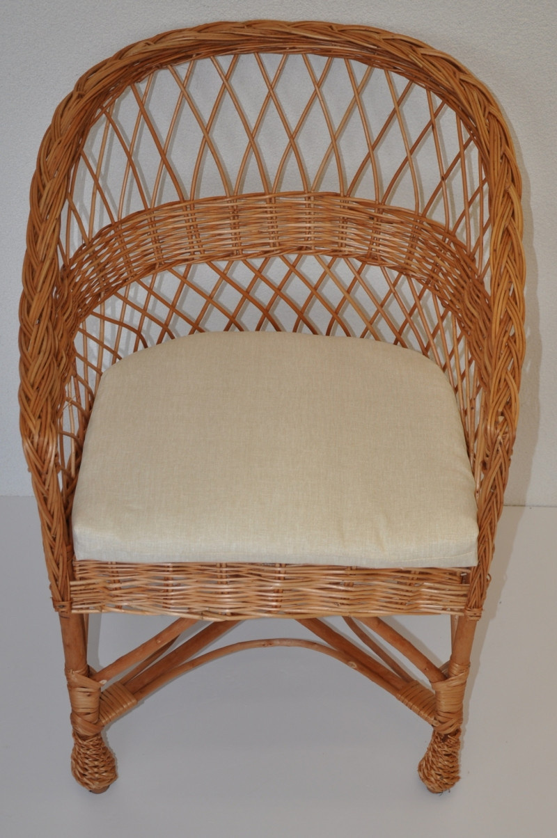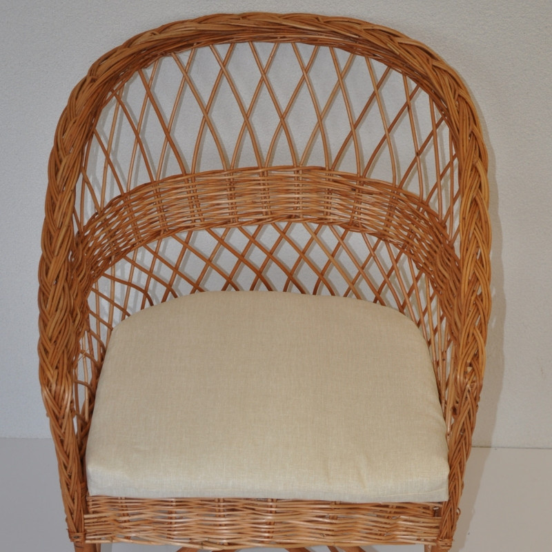 Samostatný polstr na křesla z vrbového proutí. | Polstr je vhodný na křesla, která jsou vyráběna z vrbového proutí v Polsku. Křesla z vrbového proutí se povětšinou liší ve tvaru a rozmanitosti výpletu, ale velikost sedací části je v mnoha případech stejná, a je možné použít námi prodávaný polstr. Velikost polstru je: šíře 46 cm, hloubka 45 cm. Polstr je plněný dutým polyeterovým vláknem. Polstr je opatřen tkanicemi ve stejné barvě látky pro snadné uchycení ke konstrukci křesla.