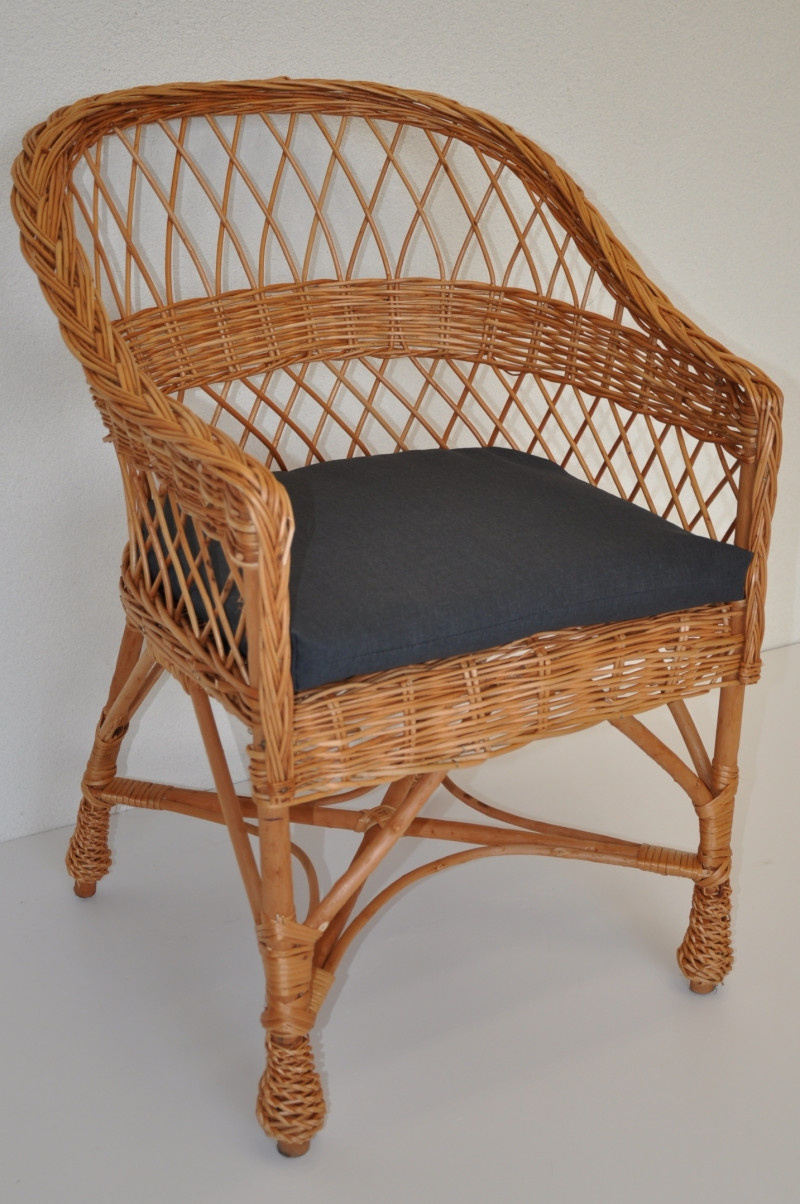 Samostatný polstr na křesla z vrbového proutí. | Polstr je vhodný na křesla, která jsou vyráběna z vrbového proutí v Polsku. Křesla z vrbového proutí se povětšinou liší ve tvaru a rozmanitosti výpletu, ale velikost sedací části je v mnoha případech stejná, a je možné použít námi prodávaný polstr. Velikost polstru je: šíře 46 cm, hloubka 45 cm. Polstr je plněný dutým polyeterovým vláknem. Polstr je opatřen tkanicemi ve stejné barvě látky pro snadné uchycení ke konstrukci křesla.
